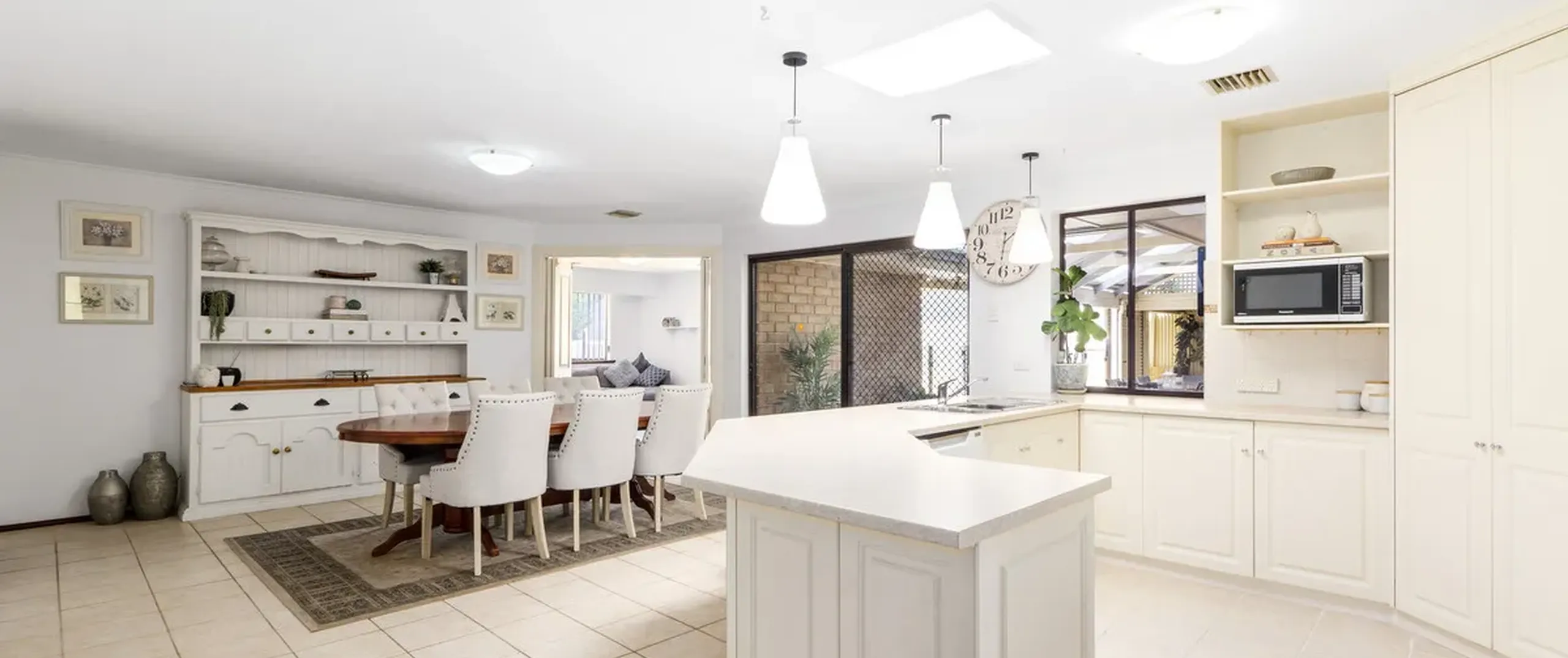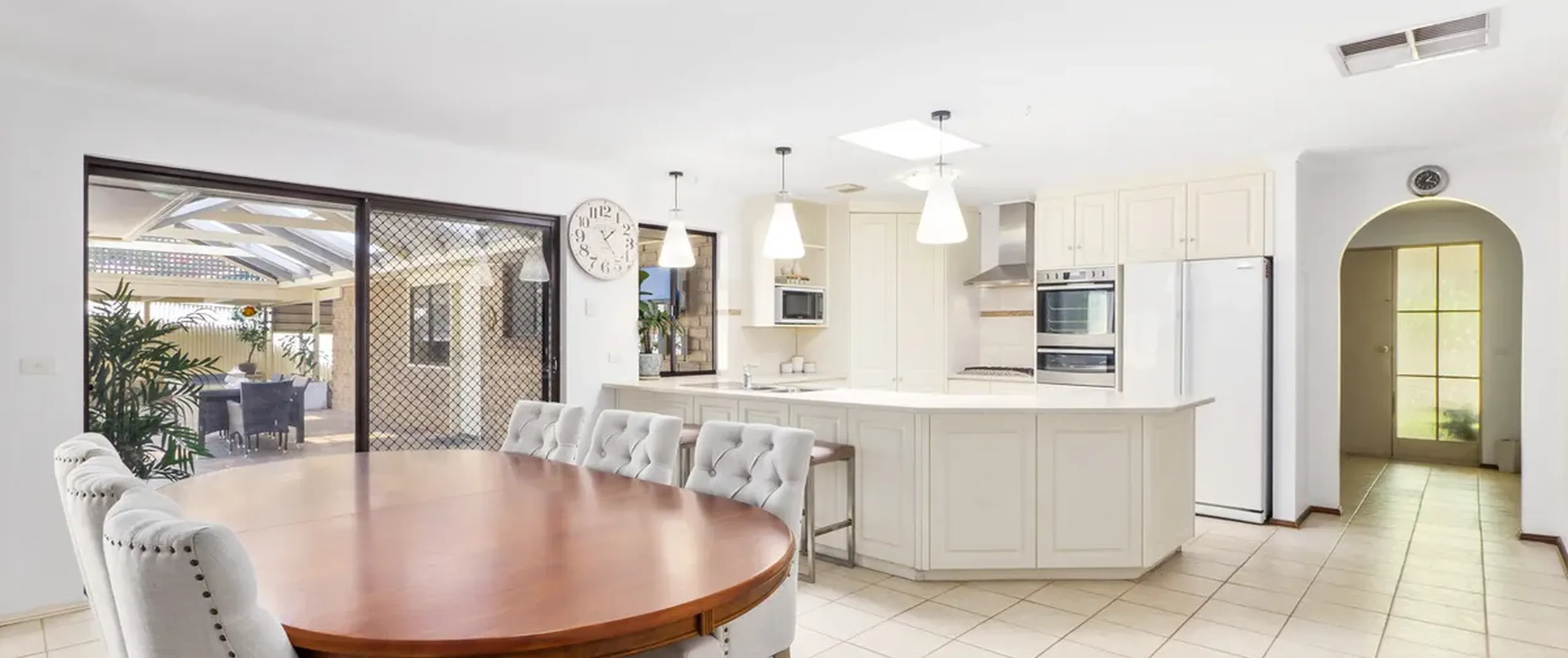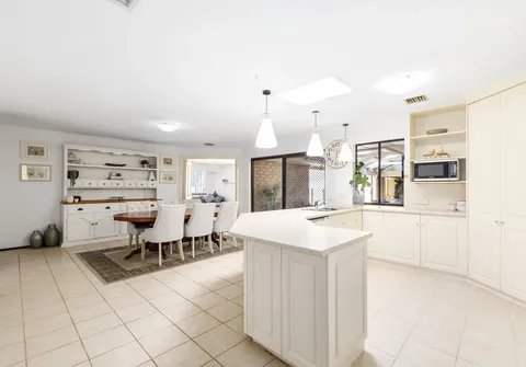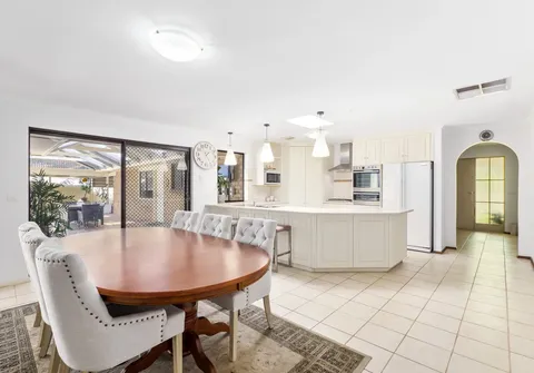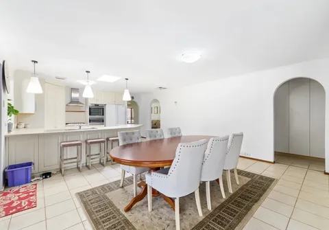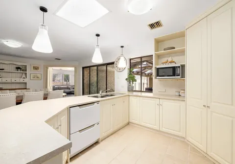 A large light-filled formal lounge and dining room is showcased upon entry which flows seamlessly through to the open-plan kitchen and family space, where an additional lounge room is easily accessible. A classic style kitchen is perfectly positioned and well-equipped to suit the cook of the home with sweeping benchtops, double drawer dishwasher, plenty of storage and gorgeous cabinets. Outside, there is plenty of room to host guests under the pergola, while the kids can enjoy the sparkling in-ground swimming pool.