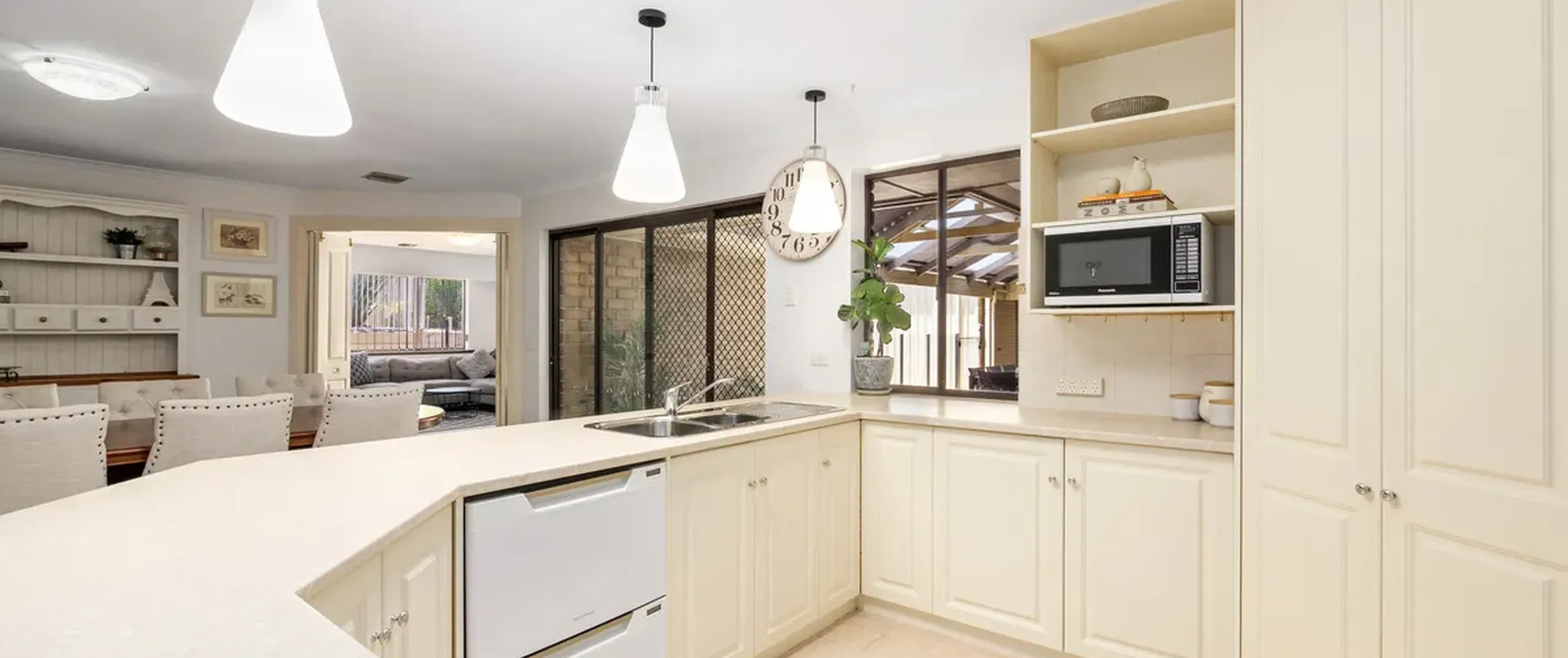 - Timeless kitchen with stainless steel oven and gas cooktop, dishwasher, large pantry and ample bench space