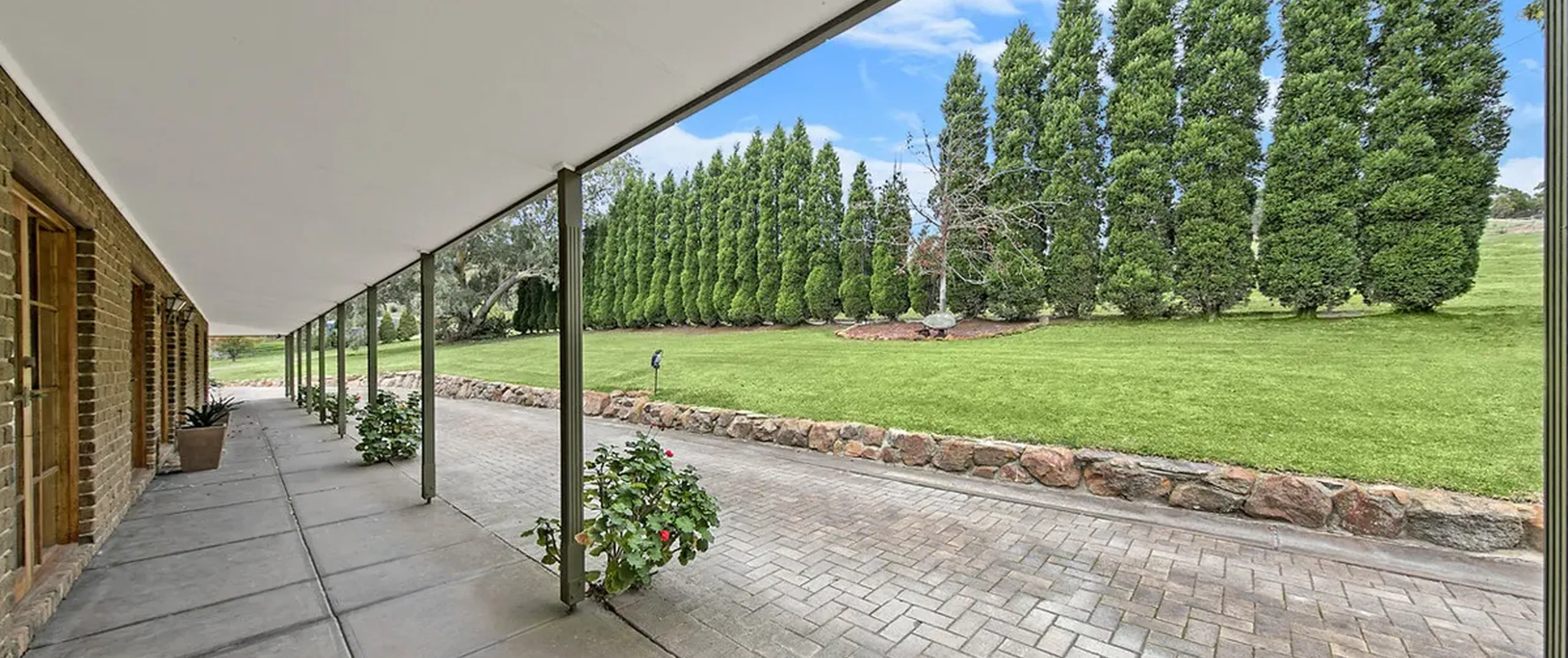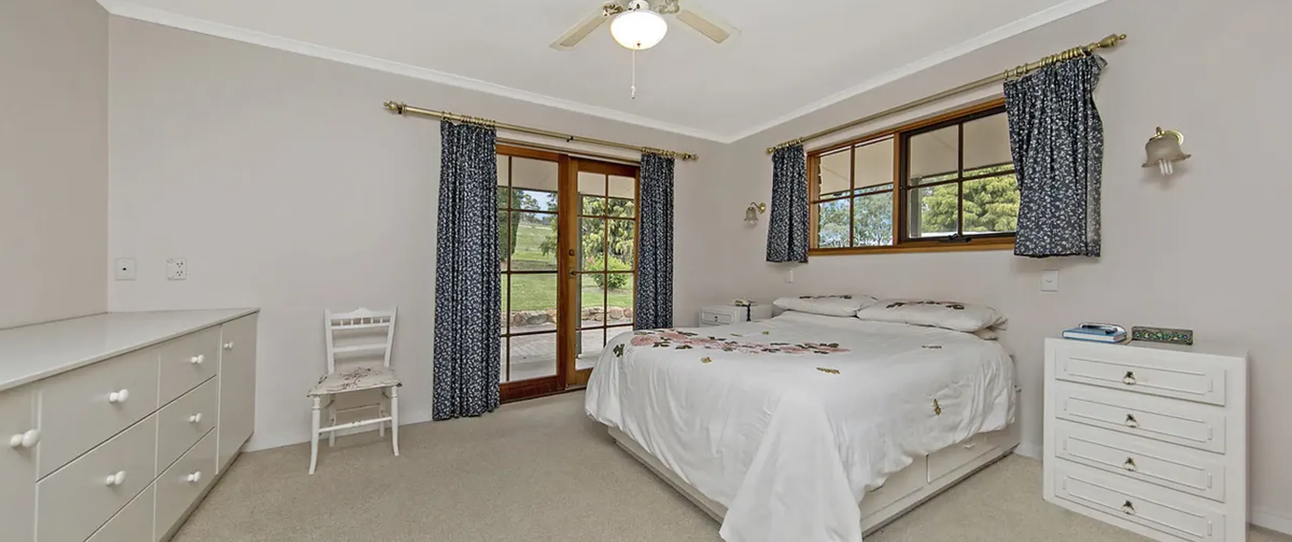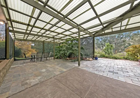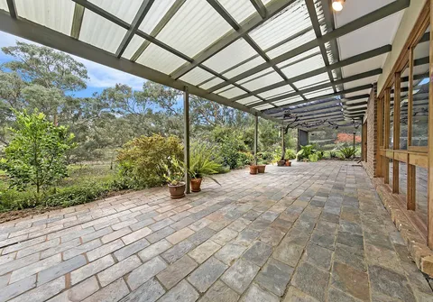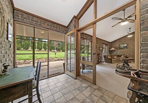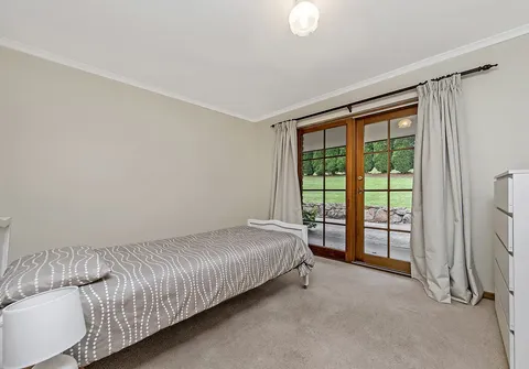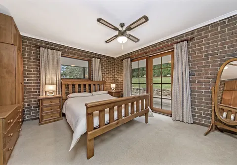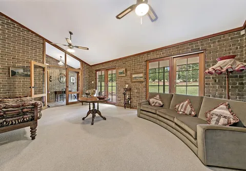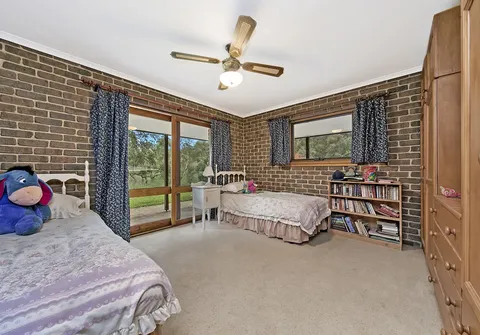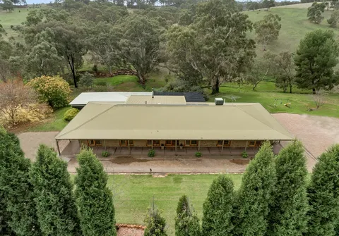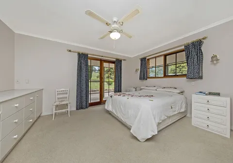 This ranch style residence with its wide verandahs and classic overhanging eaves offers substantial accommodation for the growing family, comprising of 4 to 5 generous bedrooms, all with French doors to the verandah allowing for the free flow of fresh air. 3 of the bedrooms are serviced by the main bathroom and the master suite comprises ensuite and large walk-in robe. The 5th bedroom may also be utilized as a home office. The Baltic timber kitchen is conveniently located in the central part of the house servicing both formal and informal dining areas and providing a picturesque overview out to the manicured gardens.