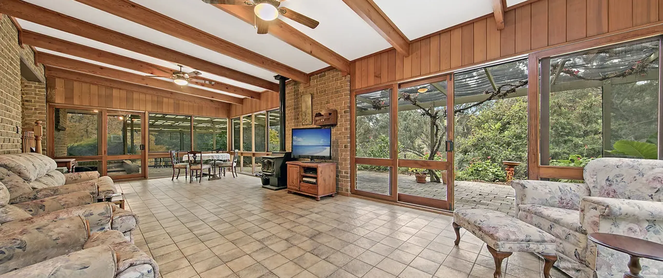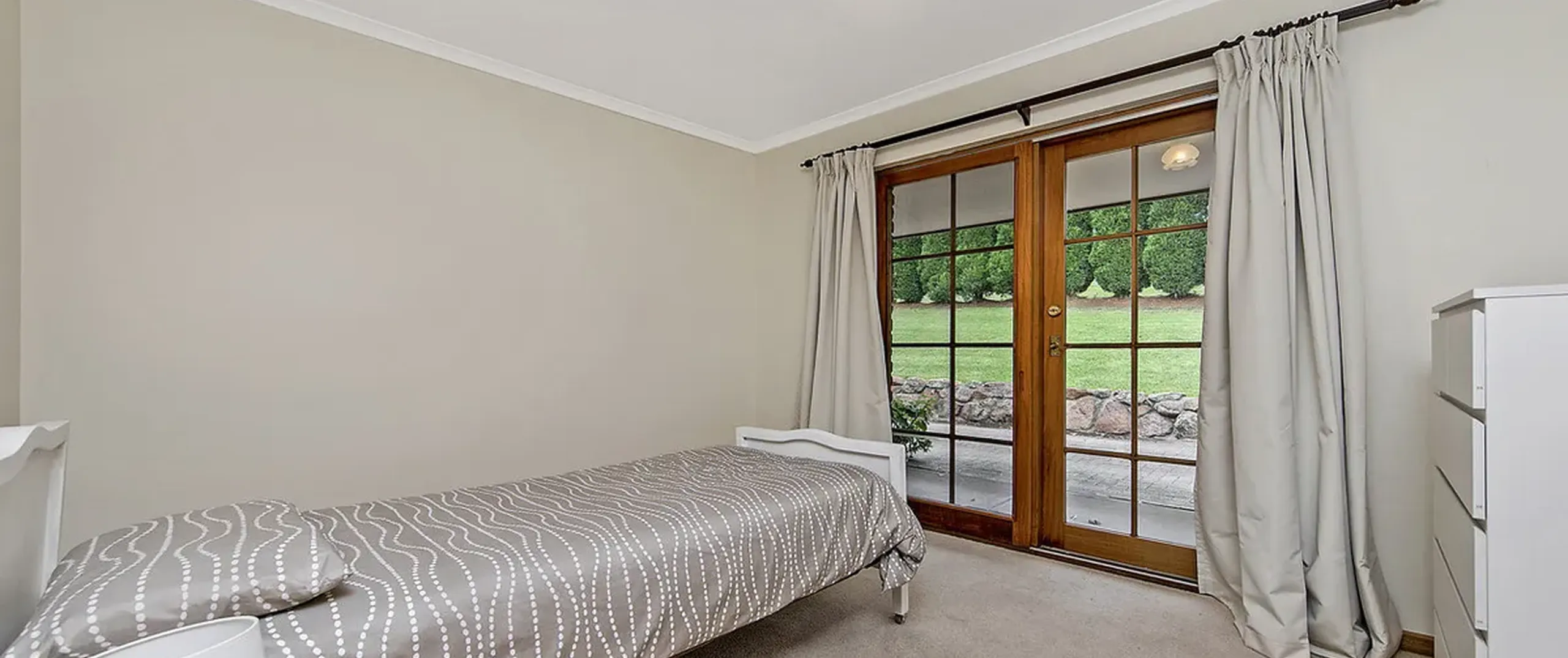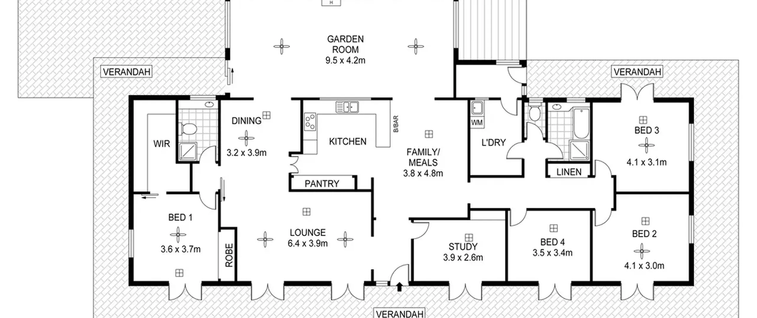 This ranch style residence with its wide verandahs and classic overhanging eaves offers substantial accommodation for the growing family, comprising of 4 to 5 generous bedrooms, all with French doors to the verandah allowing for the free flow of fresh air. 3 of the bedrooms are serviced by the main bathroom and the master suite comprises ensuite and large walk-in robe. The 5th bedroom may also be utilized as a home office. The Baltic timber kitchen is conveniently located in the central part of the house servicing both formal and informal dining areas and providing a picturesque overview out to the manicured gardens.