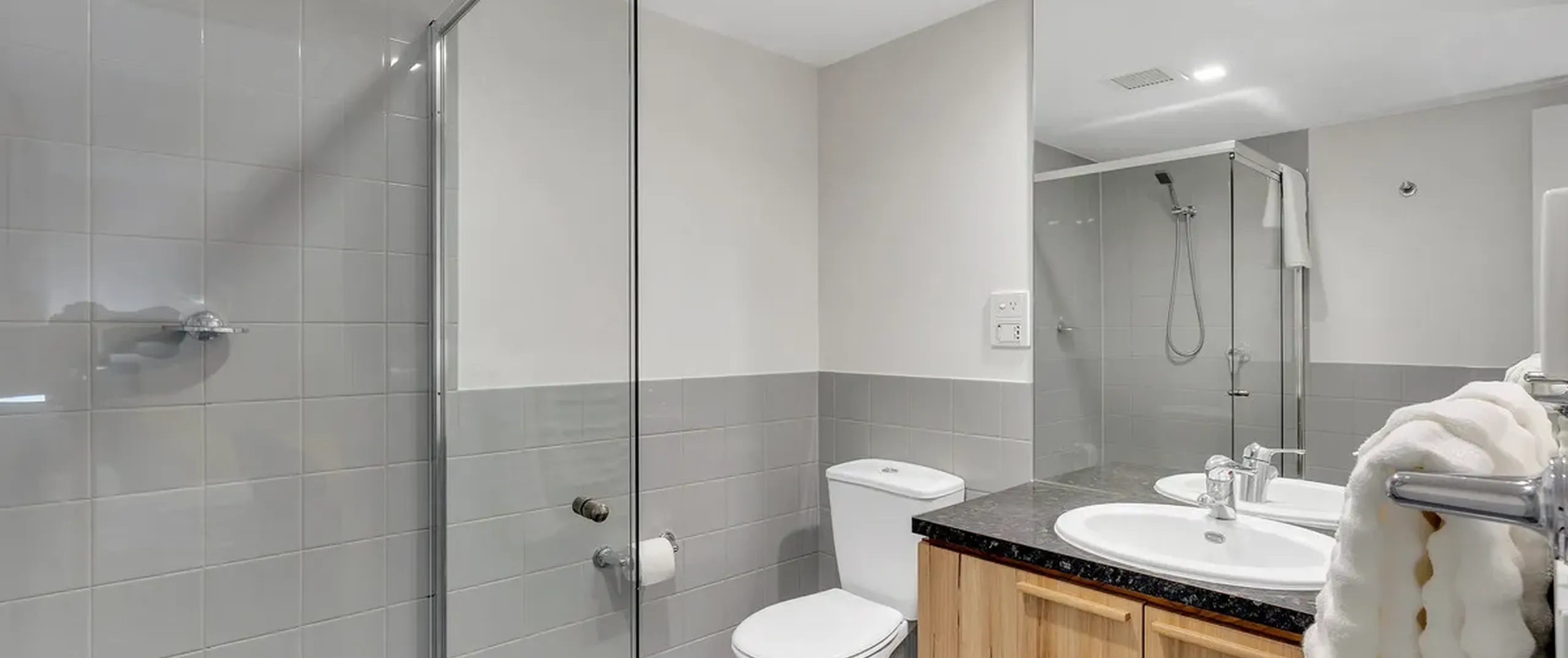 - Neat and tidy main bathroom with shower, vanity and toilet