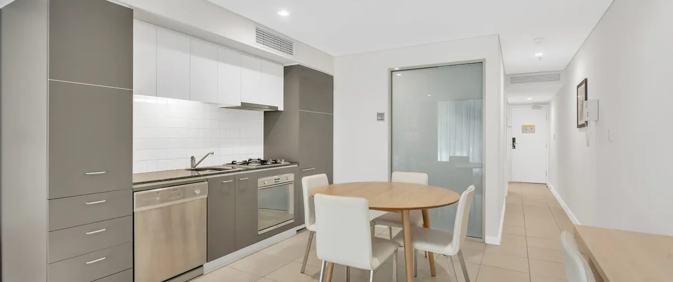 - Practical kitchen with gas cooktop, oven, dishwasher and ample cupboard storage