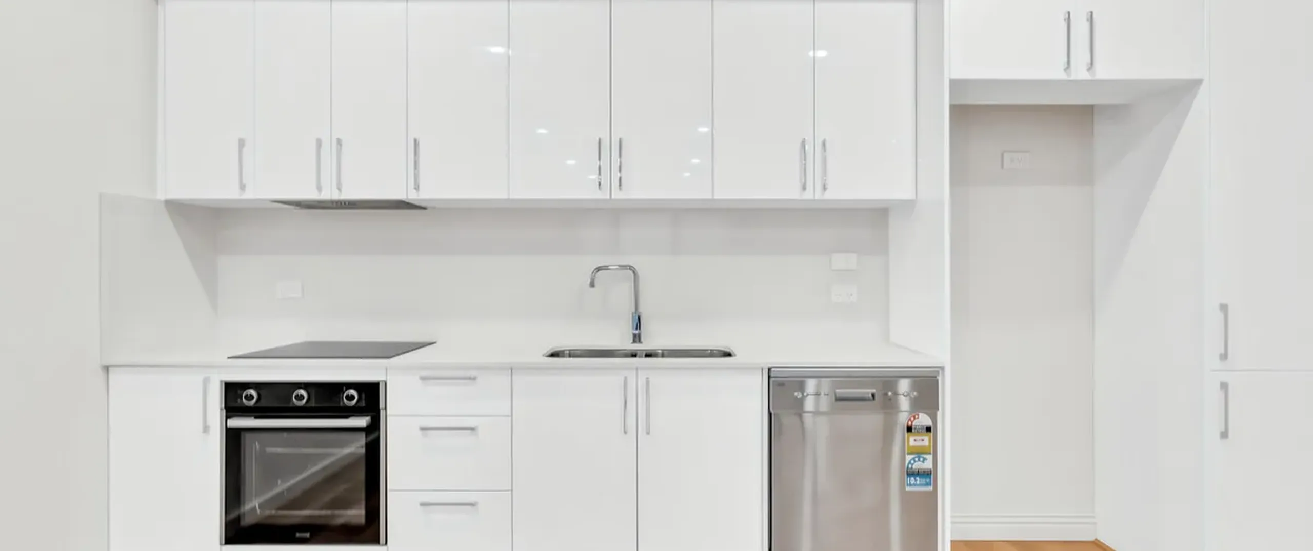 - Modern kitchen featuring stainless steel appliances including oven, dishwasher, induction cook top and ample cupboard storage