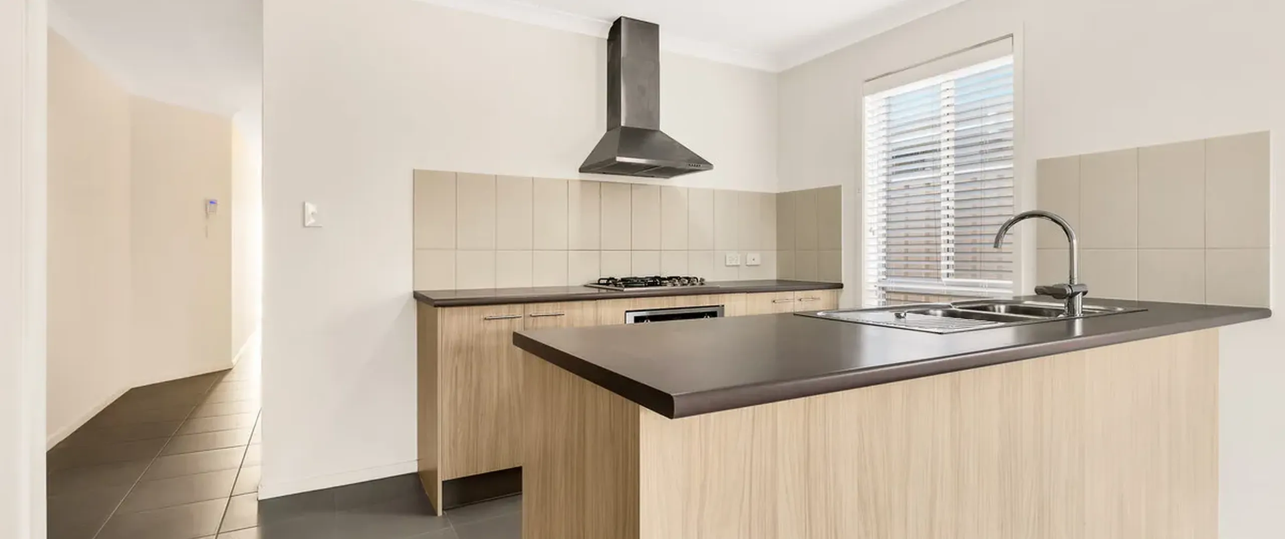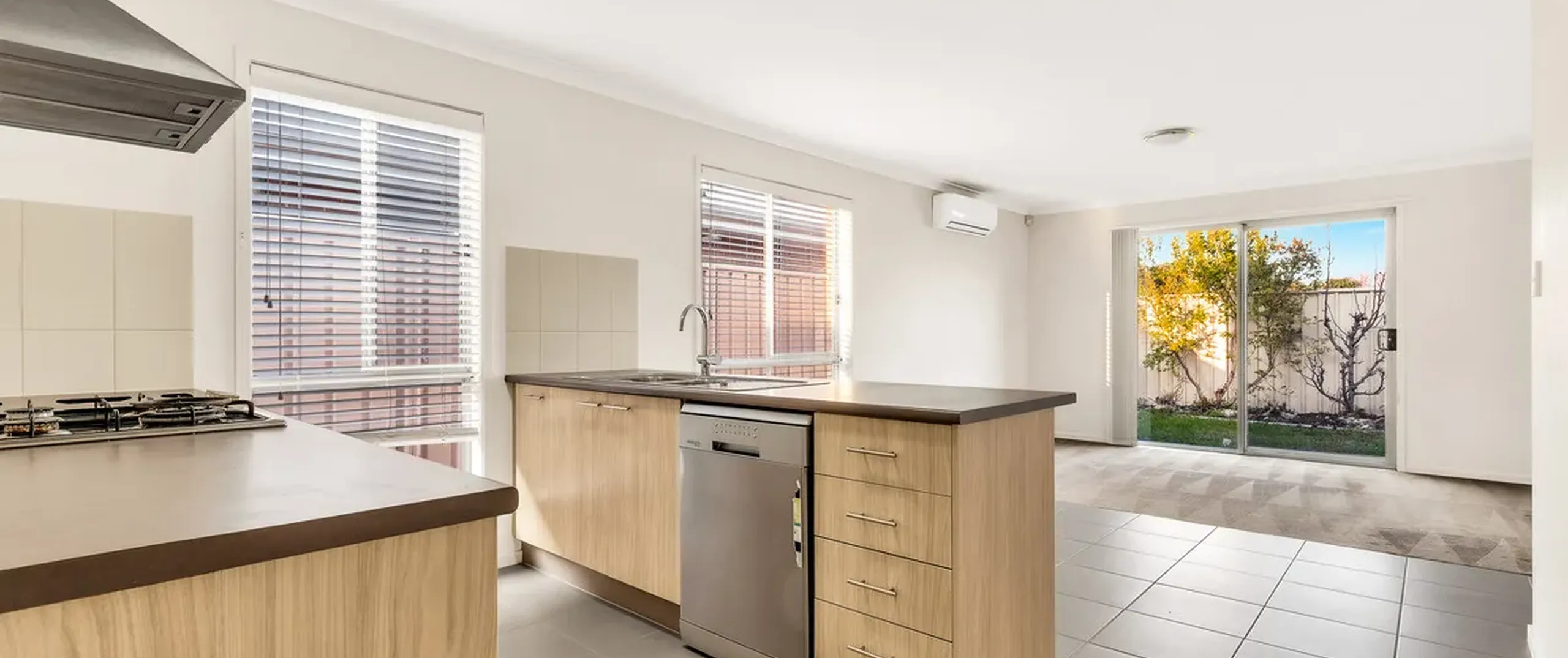 - Kitchen includes stainless steel under bench oven, gas cook top and dishwasher