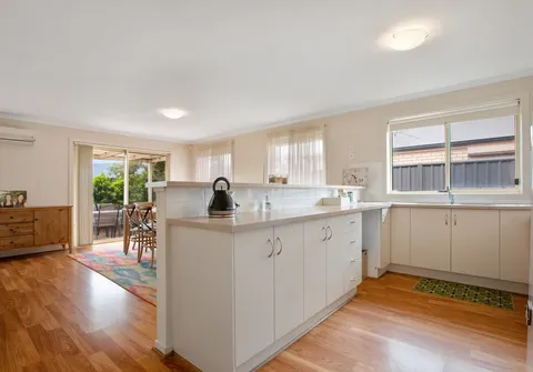 - Modern kitchen with island bench and breakfast bar, gas cooktop, dishwasher provision and ample bench and cupboard space