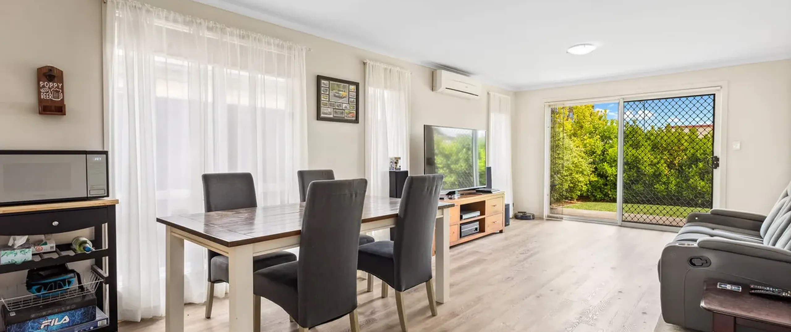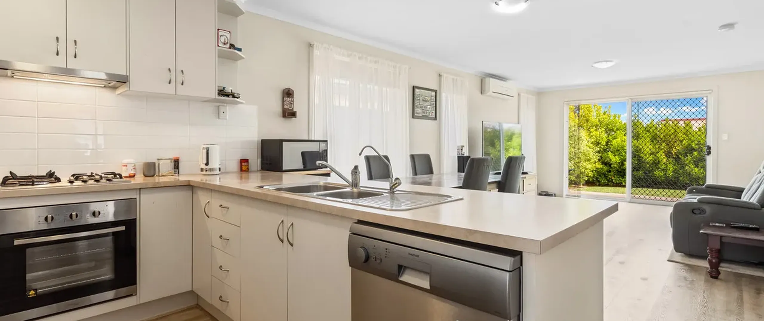 - Light-filled open plan family, dining and kitchen area with sliding door opening to the backyard