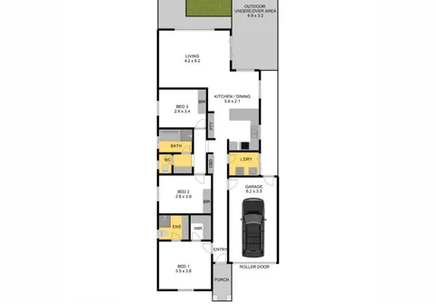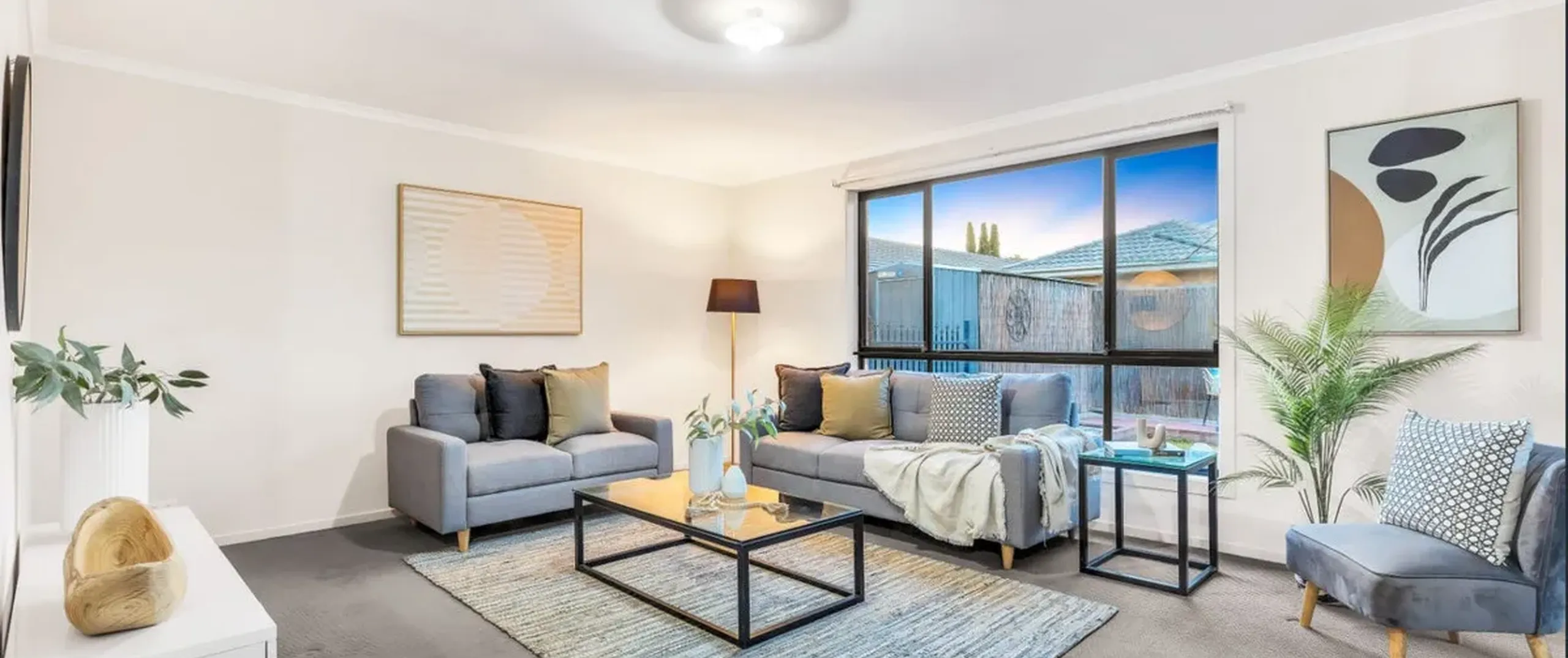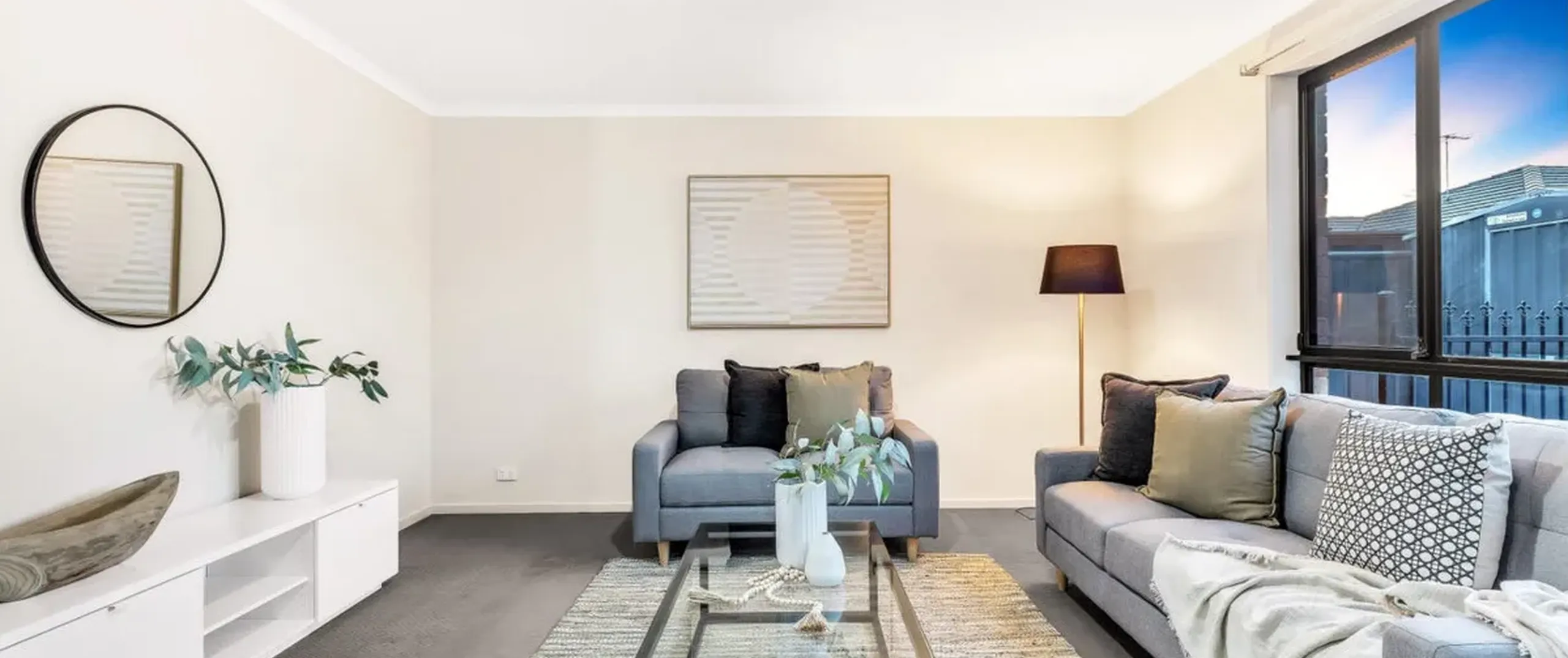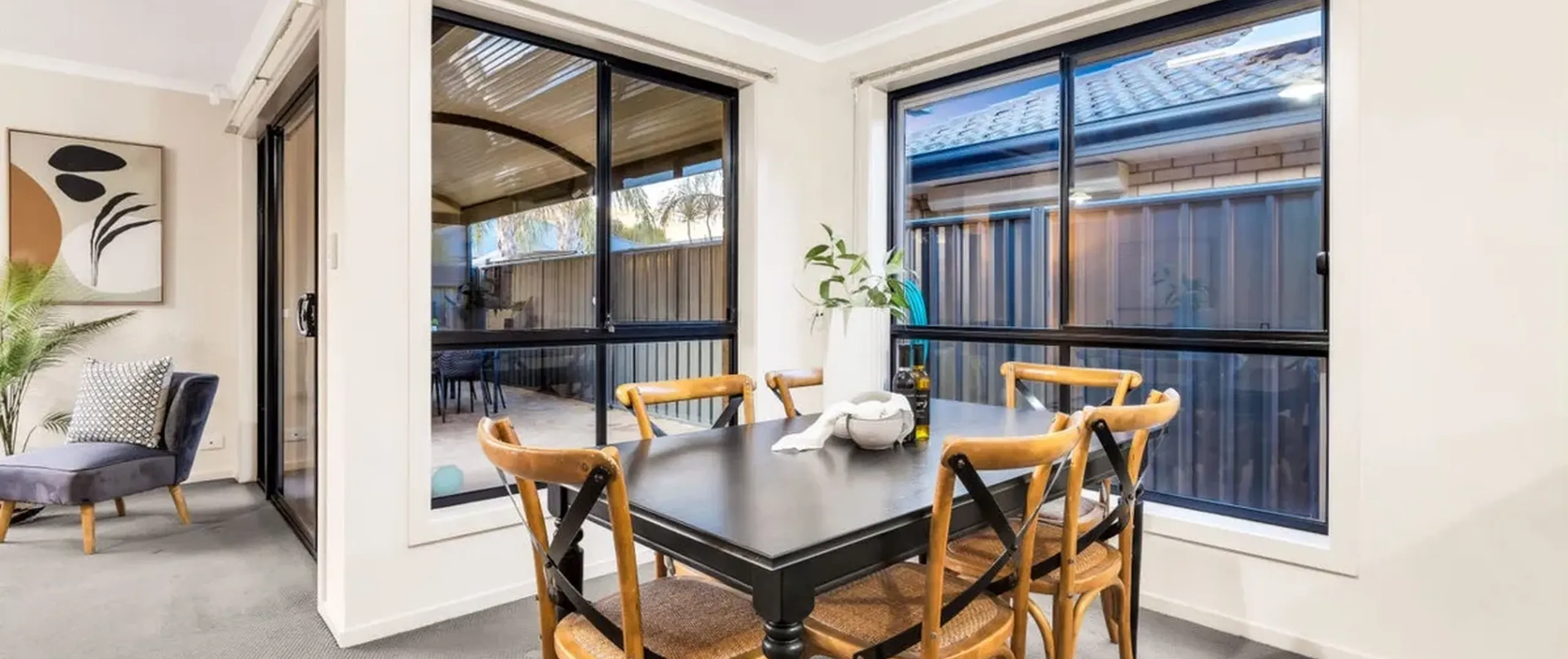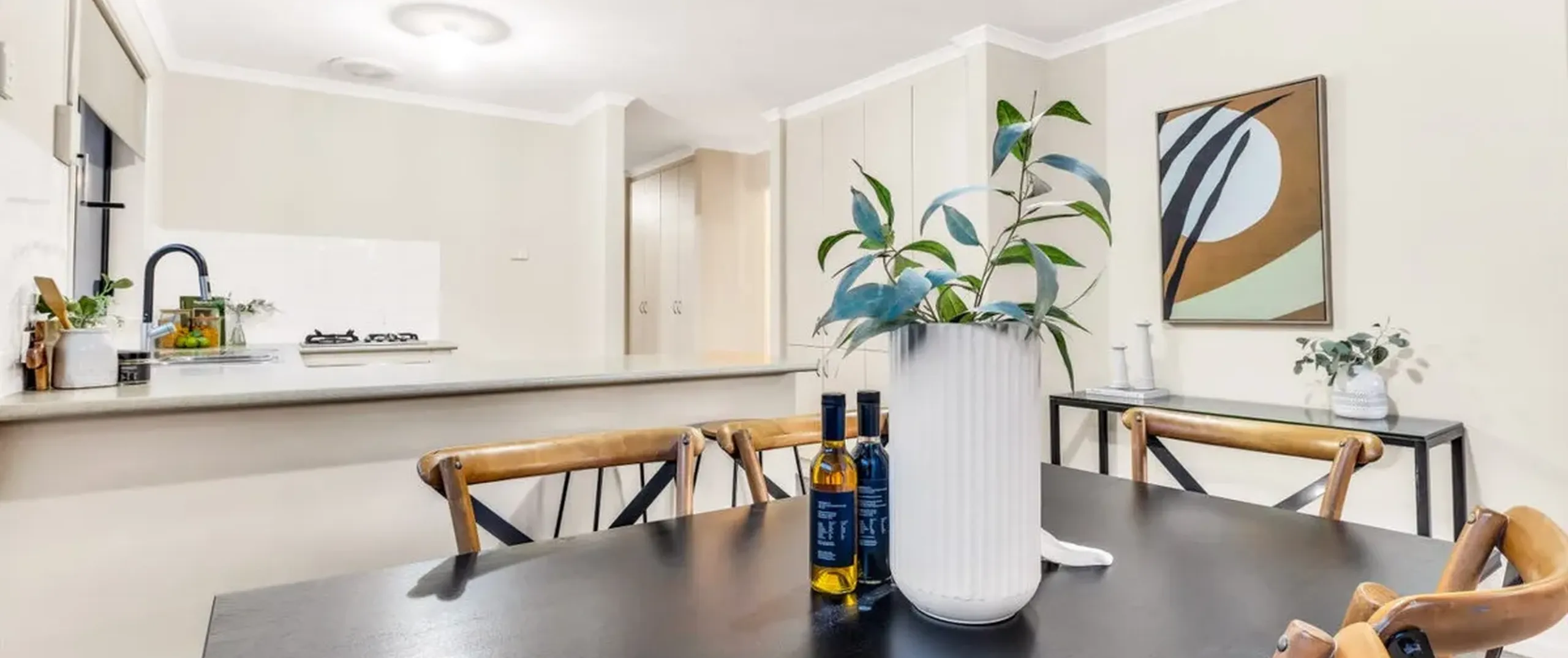 - Light filled, open plan kitchen, living and dining area with carpet and sliding door to the backyard