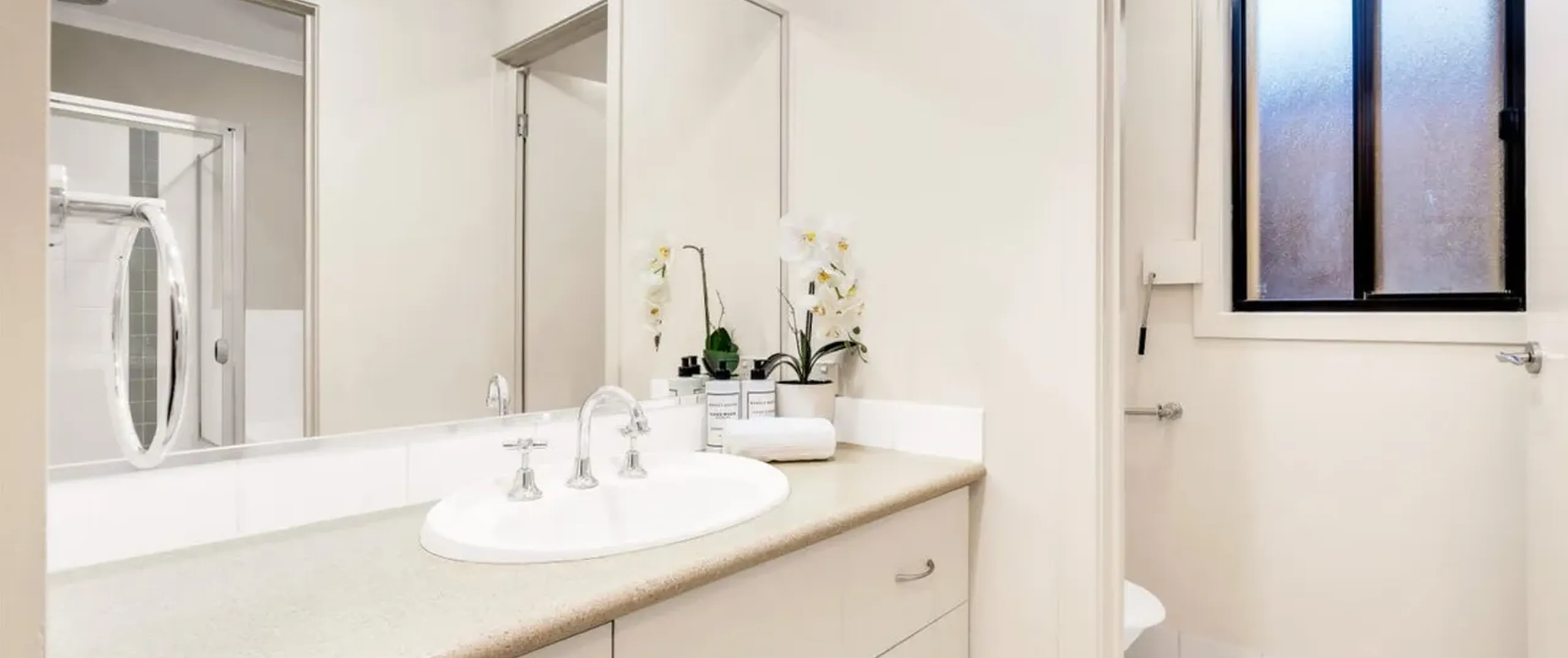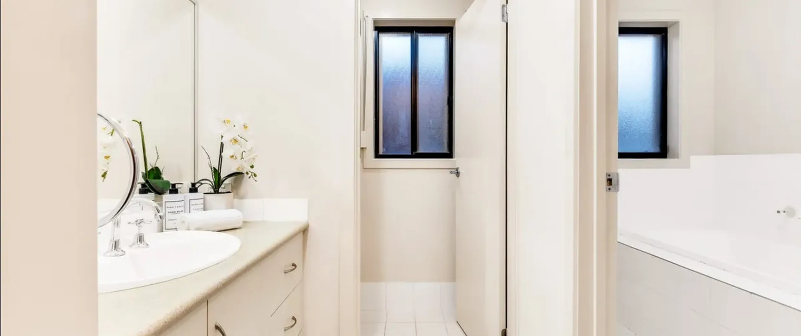 - Ensuite with corner shower, large vanity with lots of storage and bench space and toilet