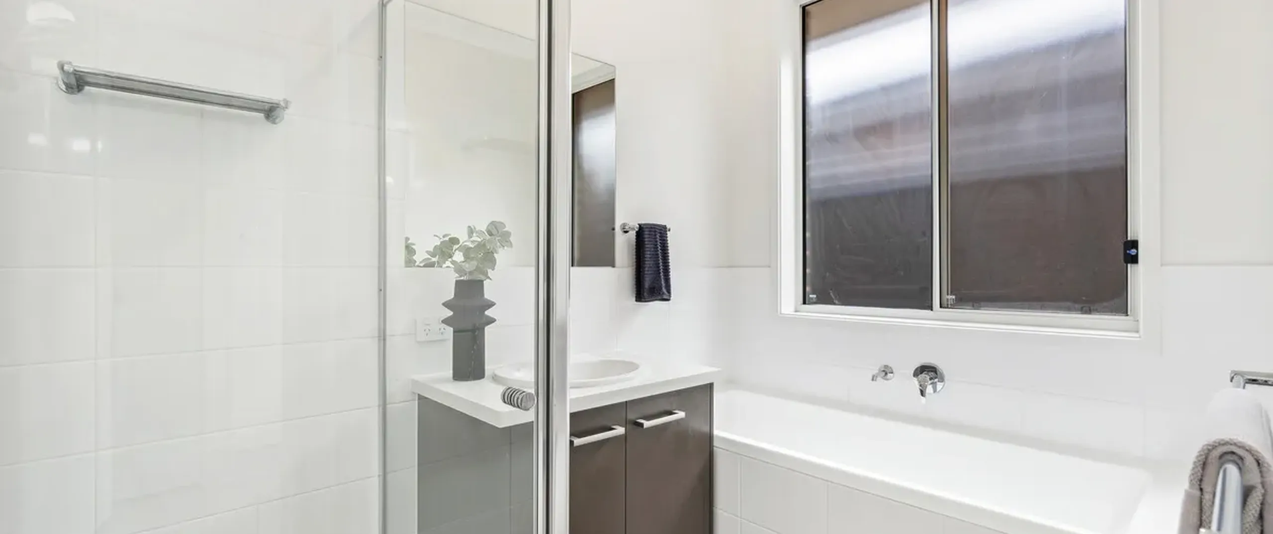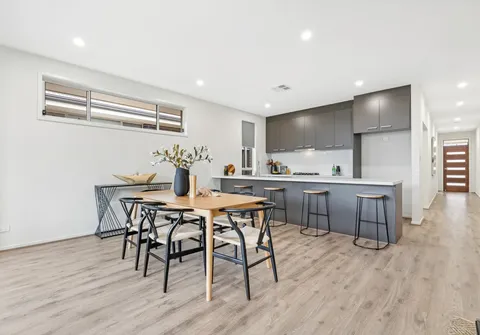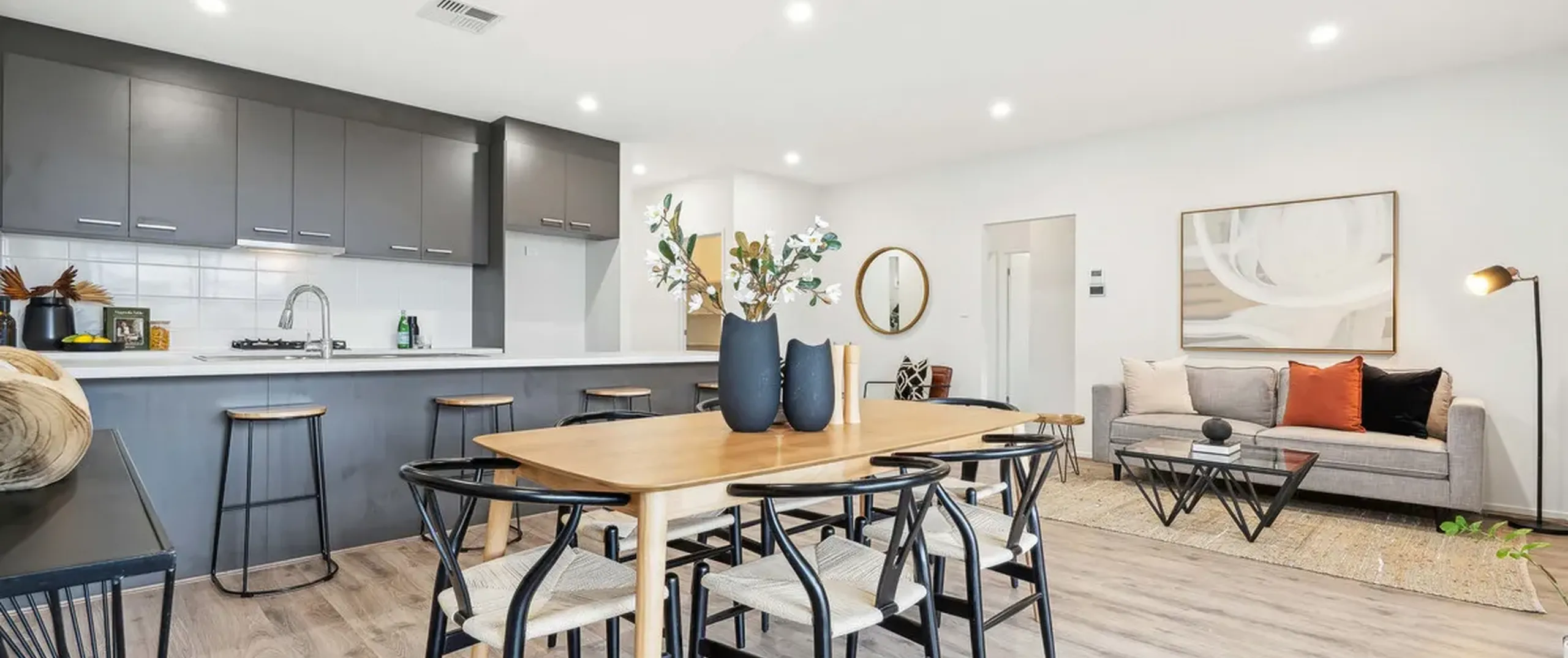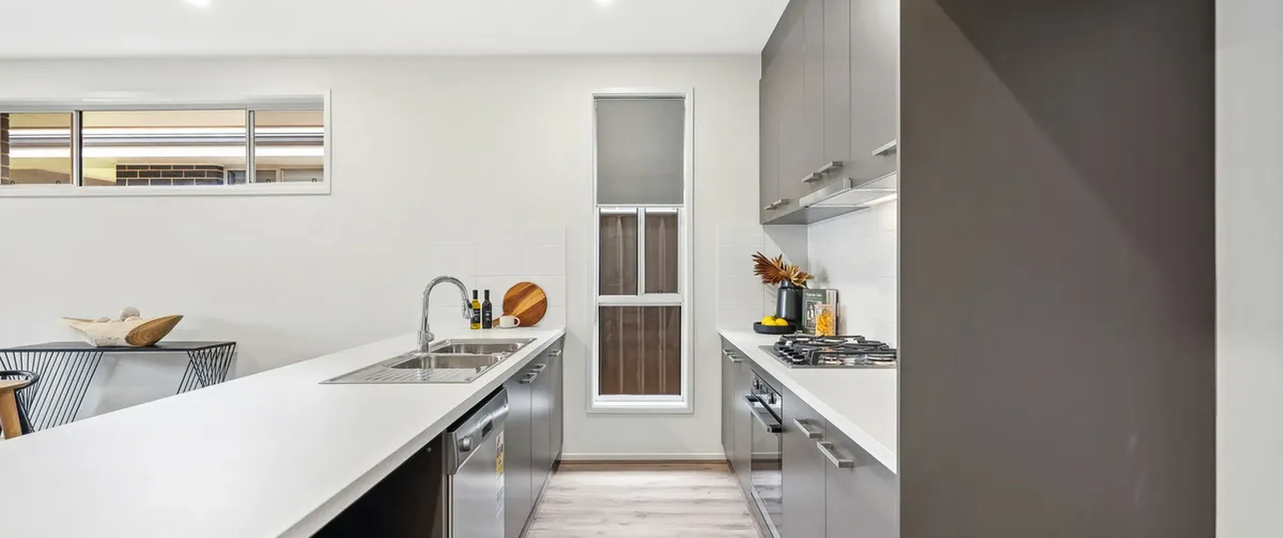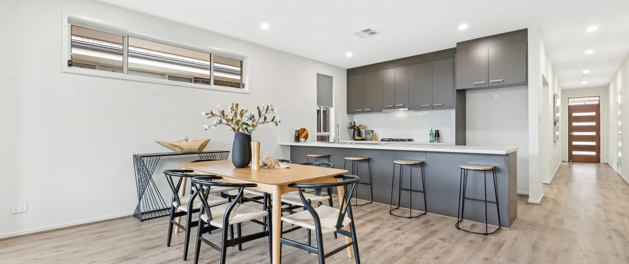 - Light filled open plan kitchen, dining and living area with glass sliding door leading to alfresco area