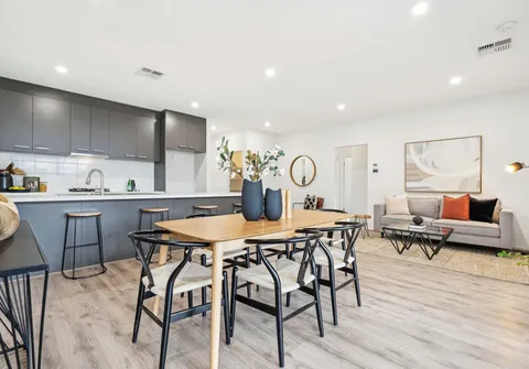 - Fantastic contemporary kitchen with stainless steel appliances, dishwasher, gas cooktop, and breakfast bar
