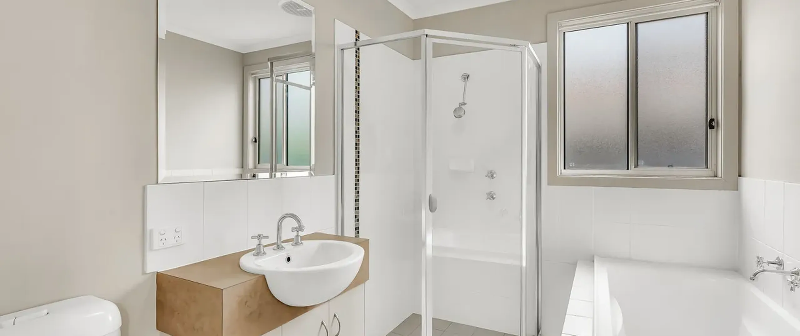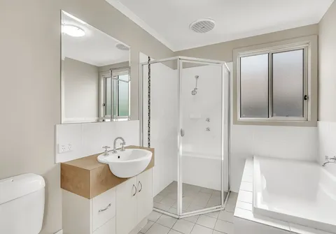 - Neat and tidy main bathroom with bath, shower, toilet and vanity