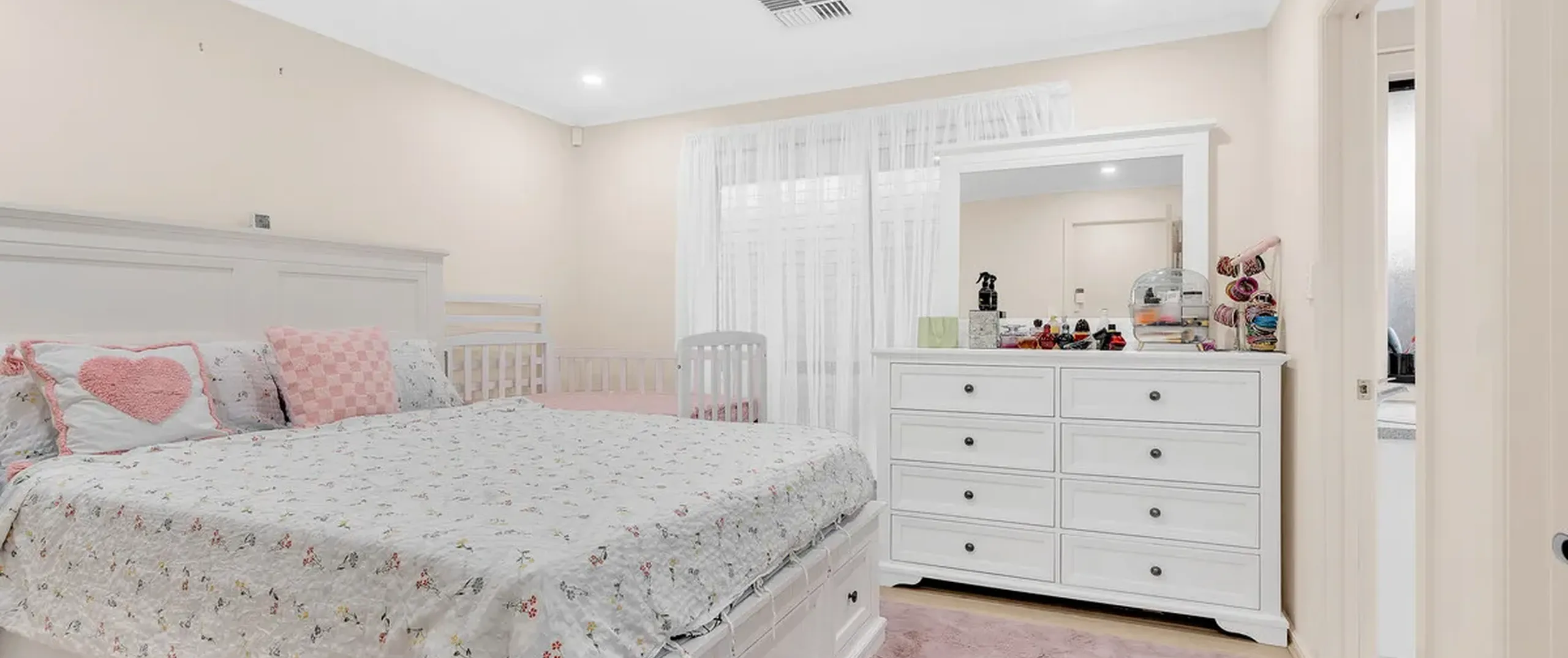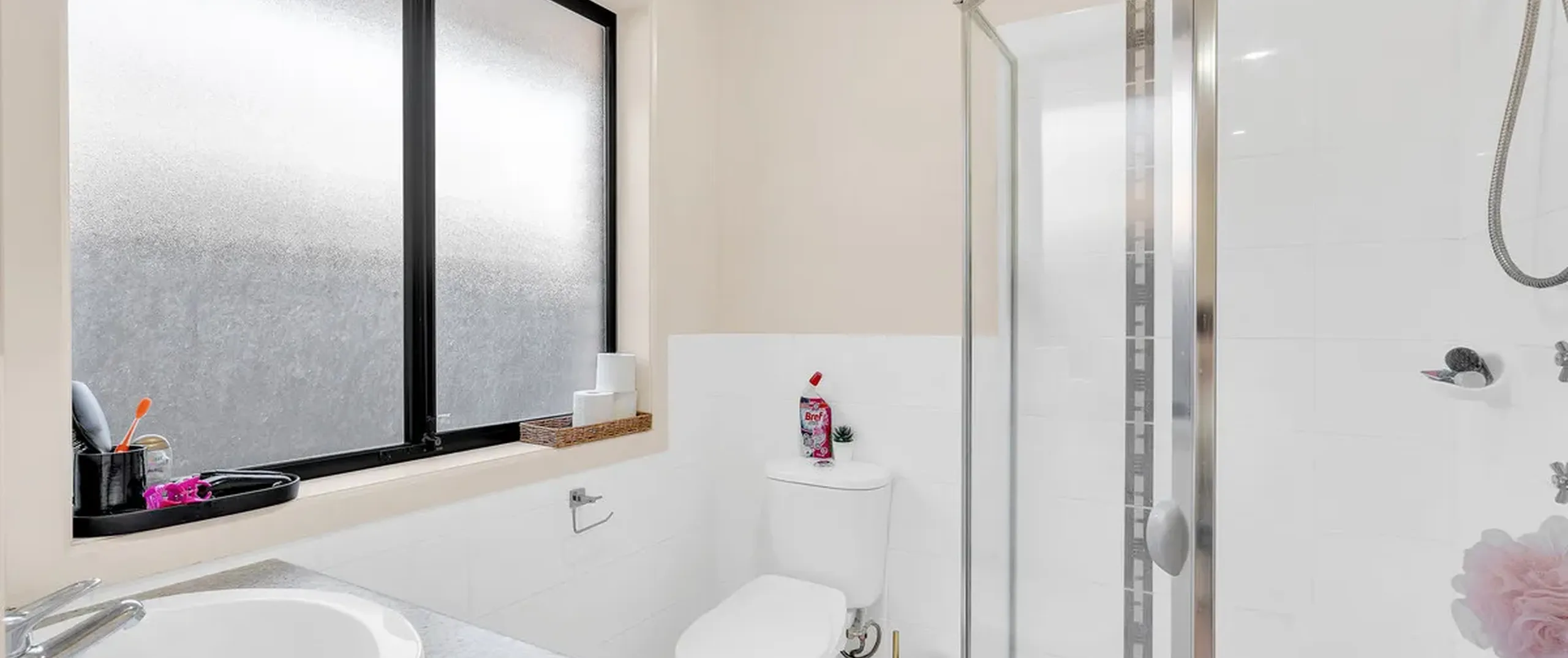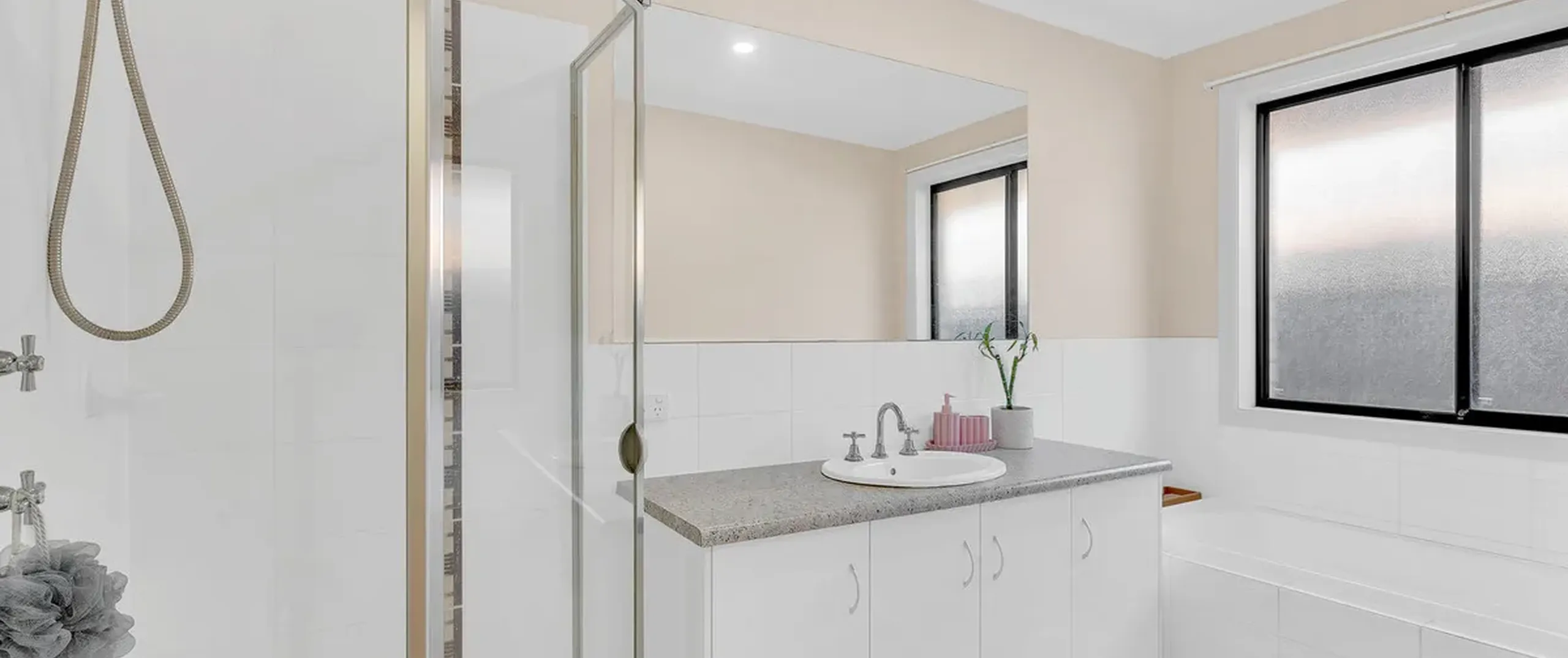 - Bright and airy main bathroom with extra wide vanity, deep bath, shower and separate toilet