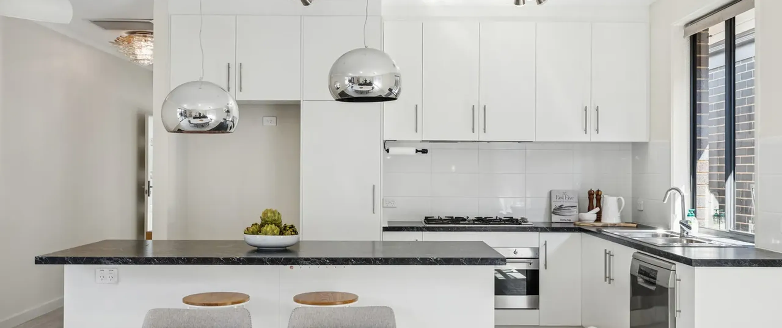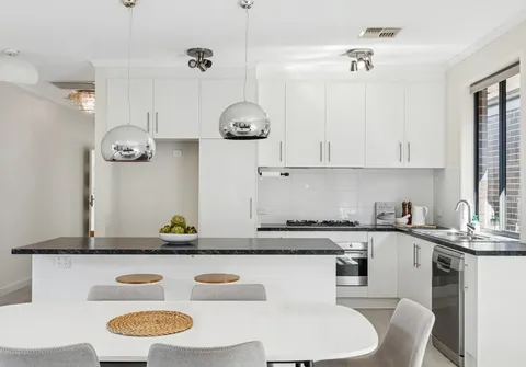 - Contemporary kitchen complete with breakfast bar, 90cm gas cooktop, stainless steel oven, dishwasher and ample cupboard and bench space