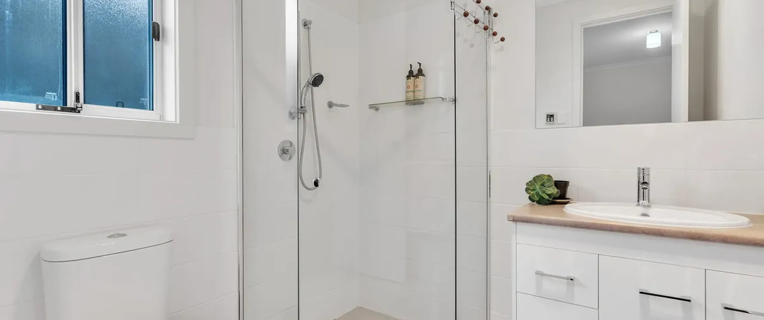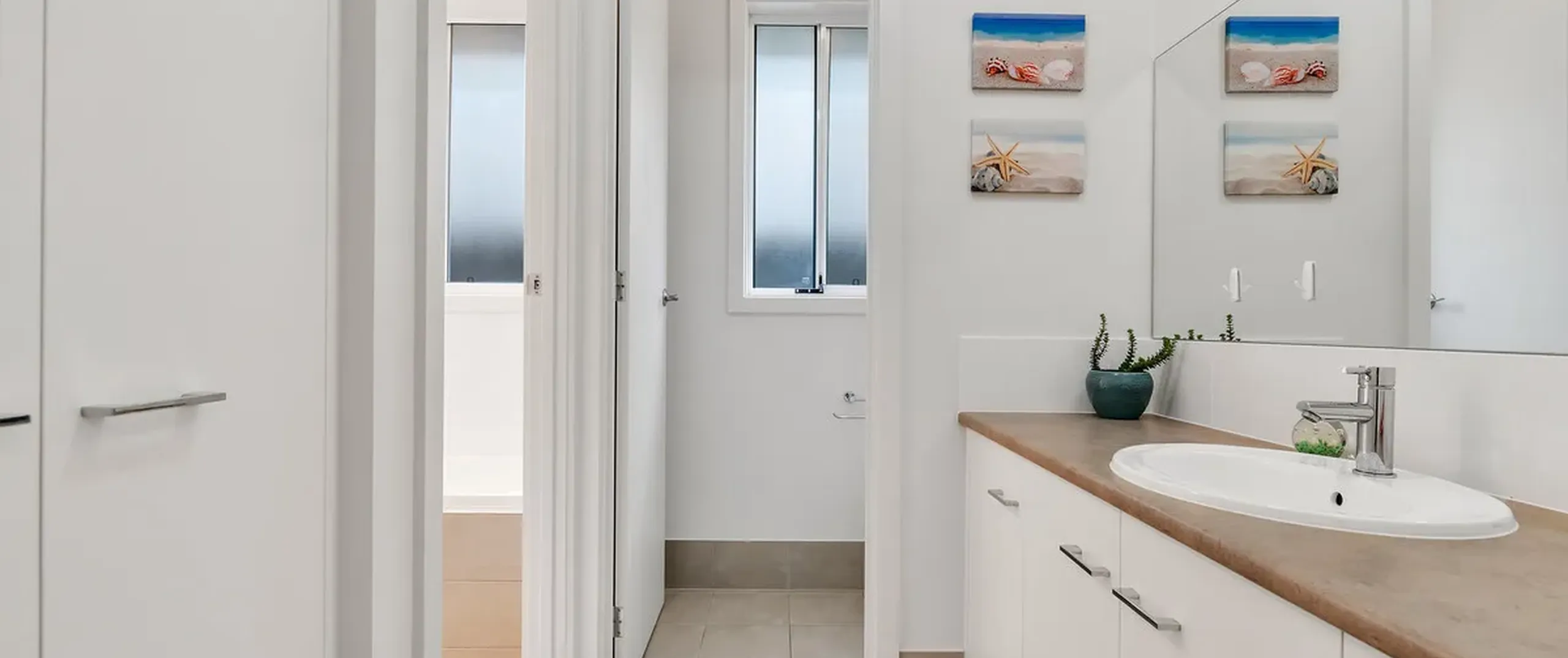 - Master bedroom with Walk in Robe and Ensuite, Featuring; semi-framed shower screen, vanity with ample storage space and mixer taps