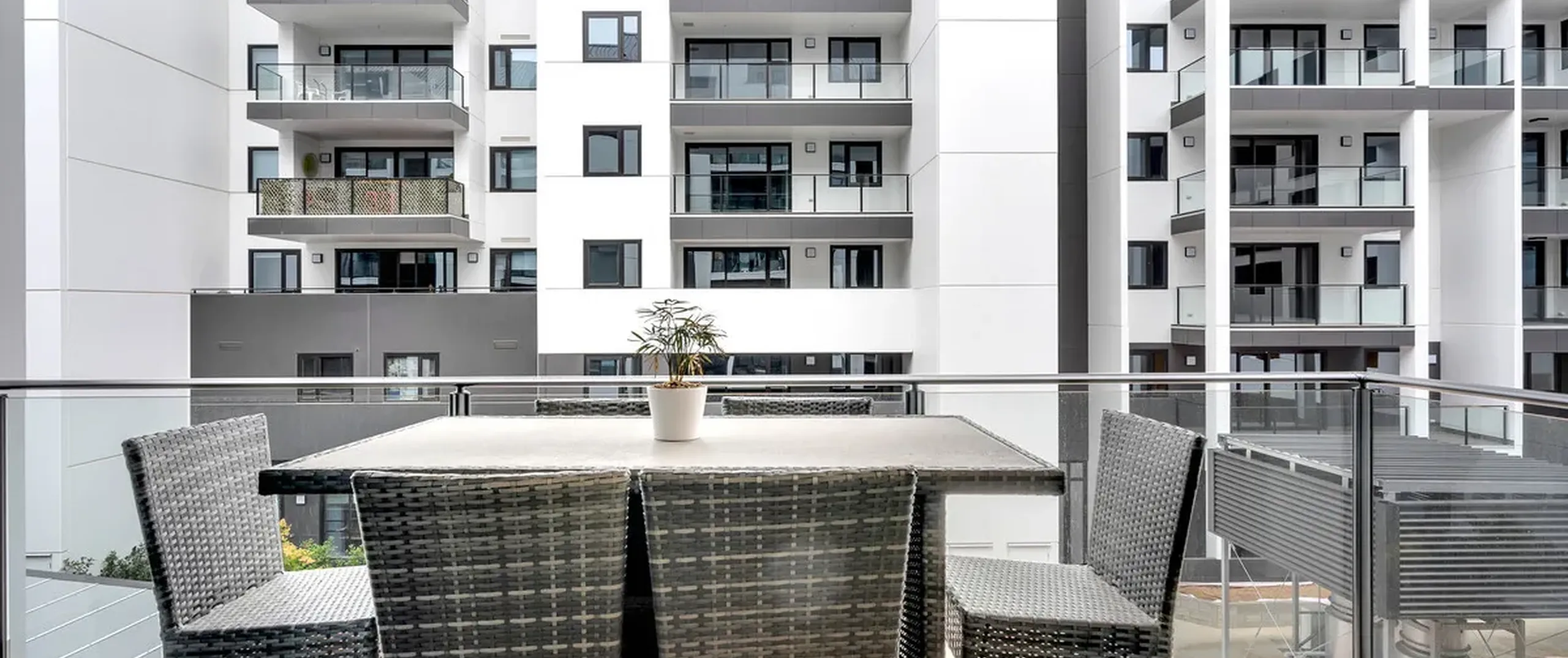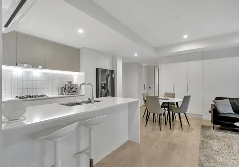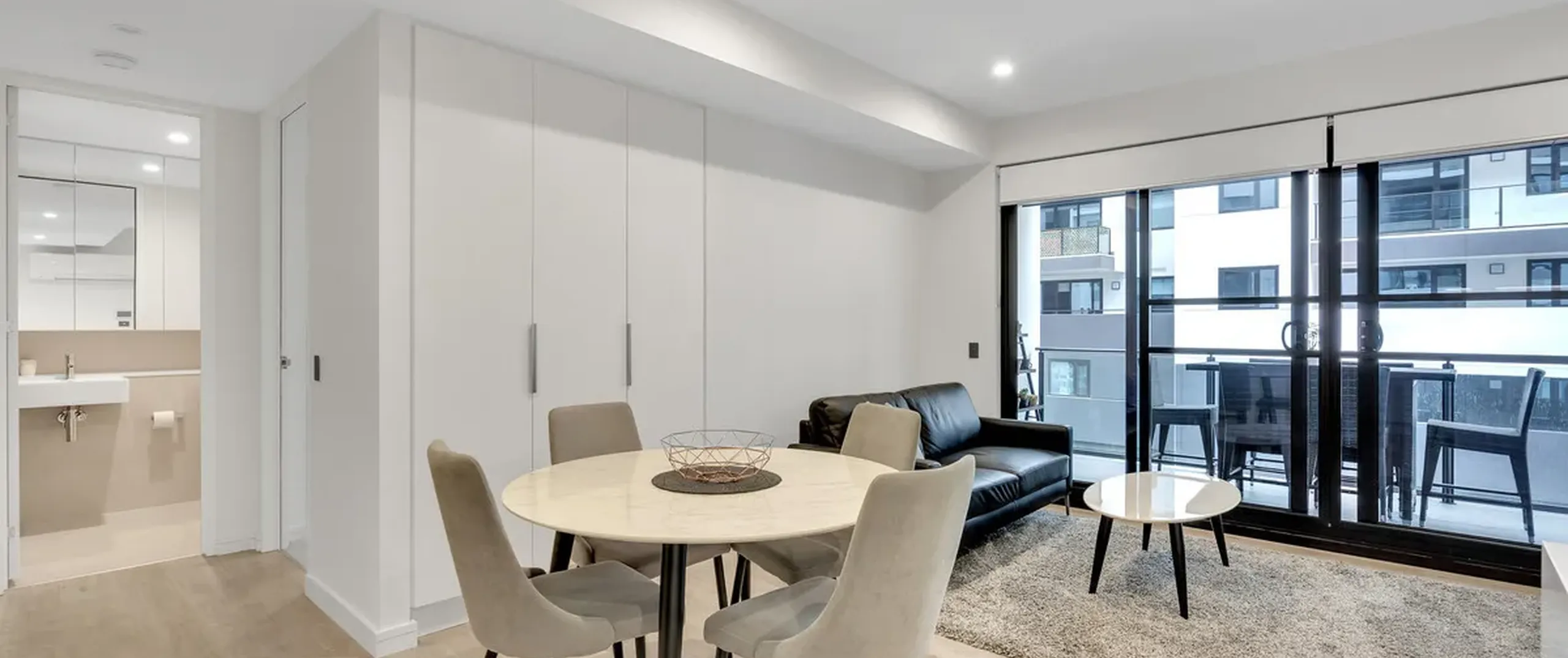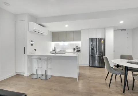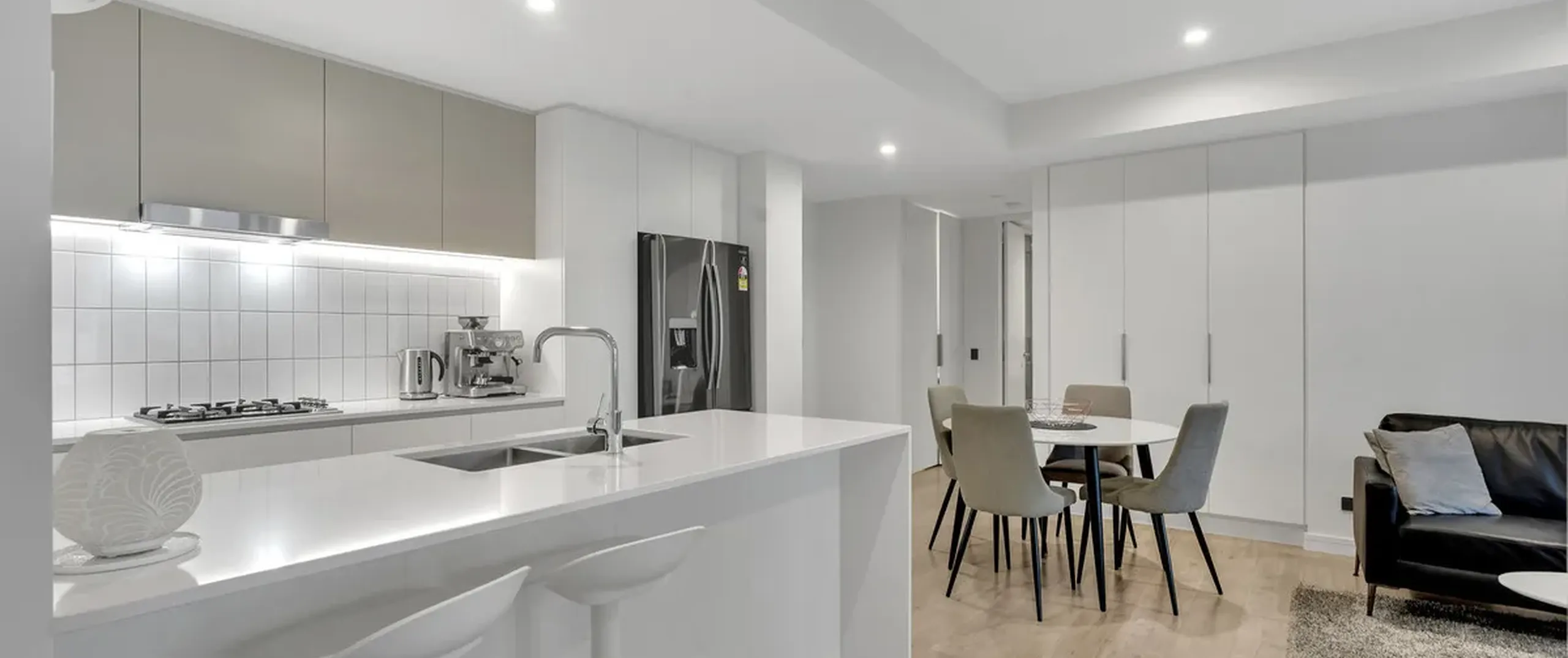 - Light and bright open plan kitchen, living and dining area leading to a private balcony