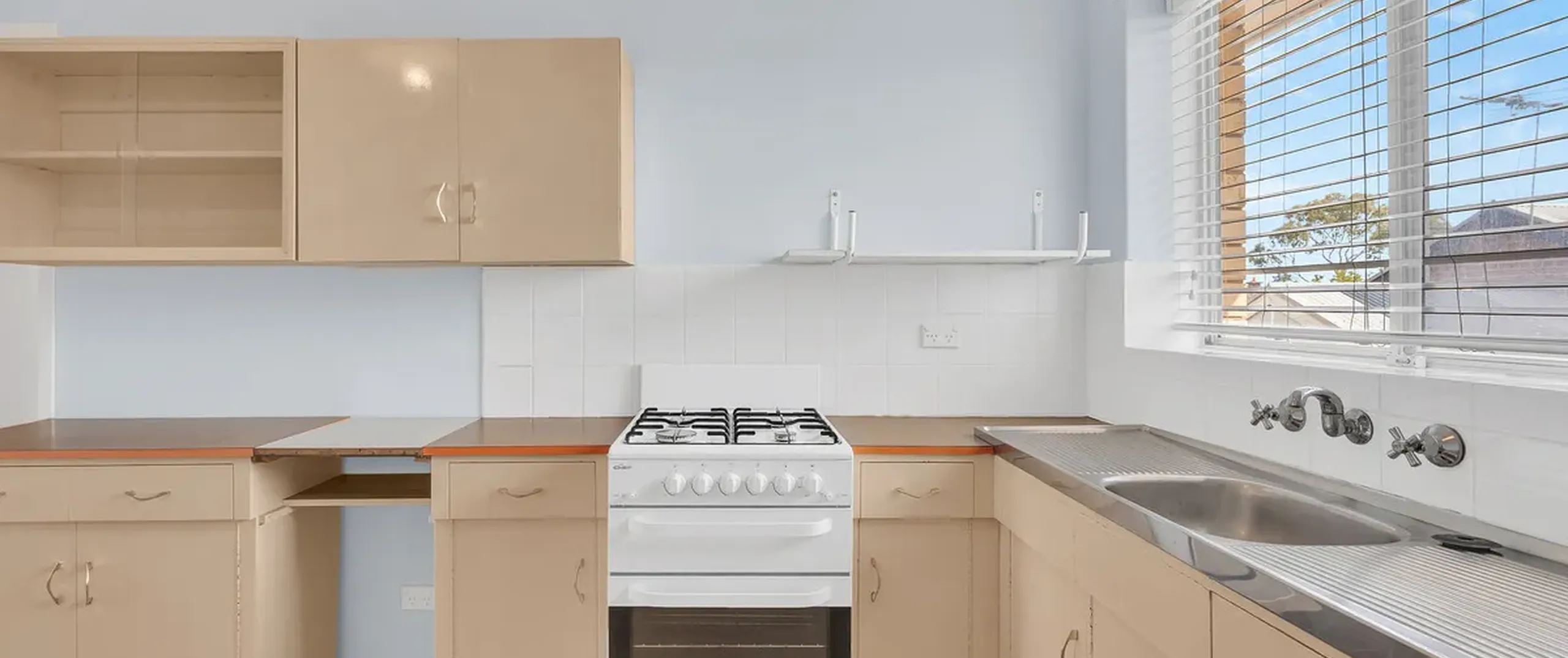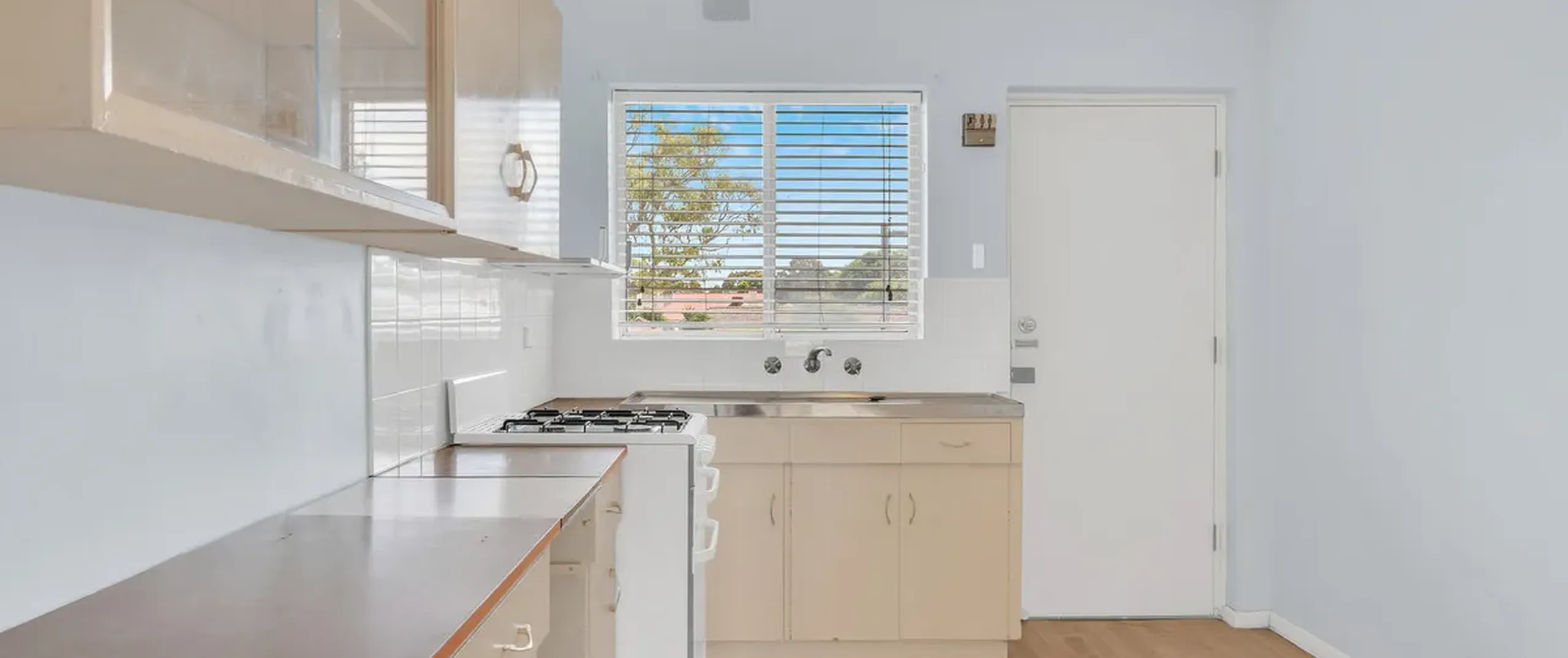 - Neat and tidy kitchen with oven and gas cooktop and ample cupboard and bench space