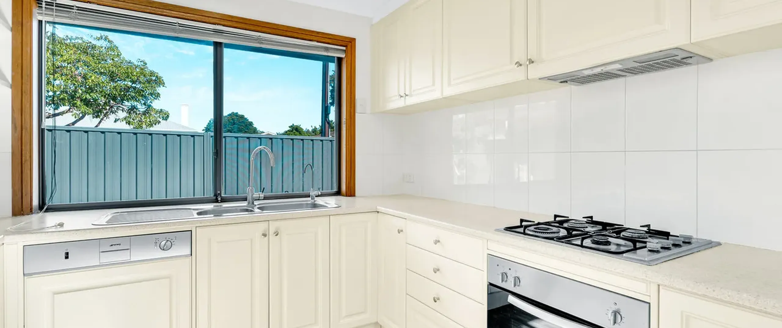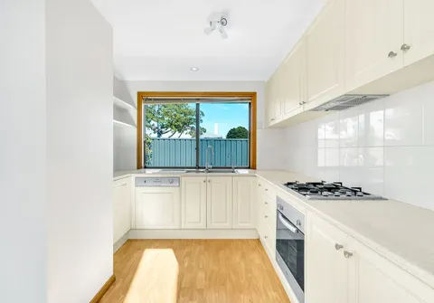 - Bright kitchen with gas cooking, dishwasher and plenty of cupboard and bench space