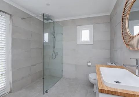 - Main bedroom complete with ensuite featuring floor to ceiling tiles and frameless shower