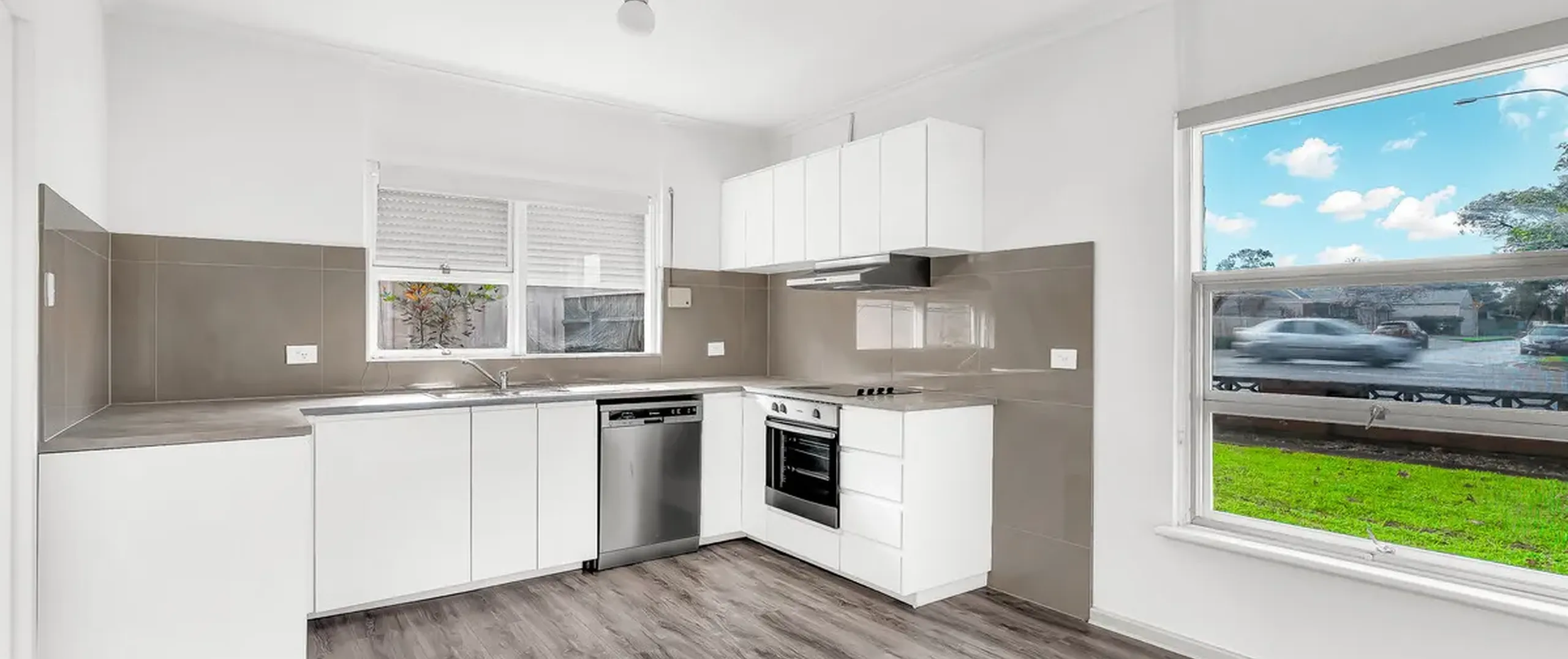 - kitchen with dishwasher, electric cooktop, an oven and ample cupboard space