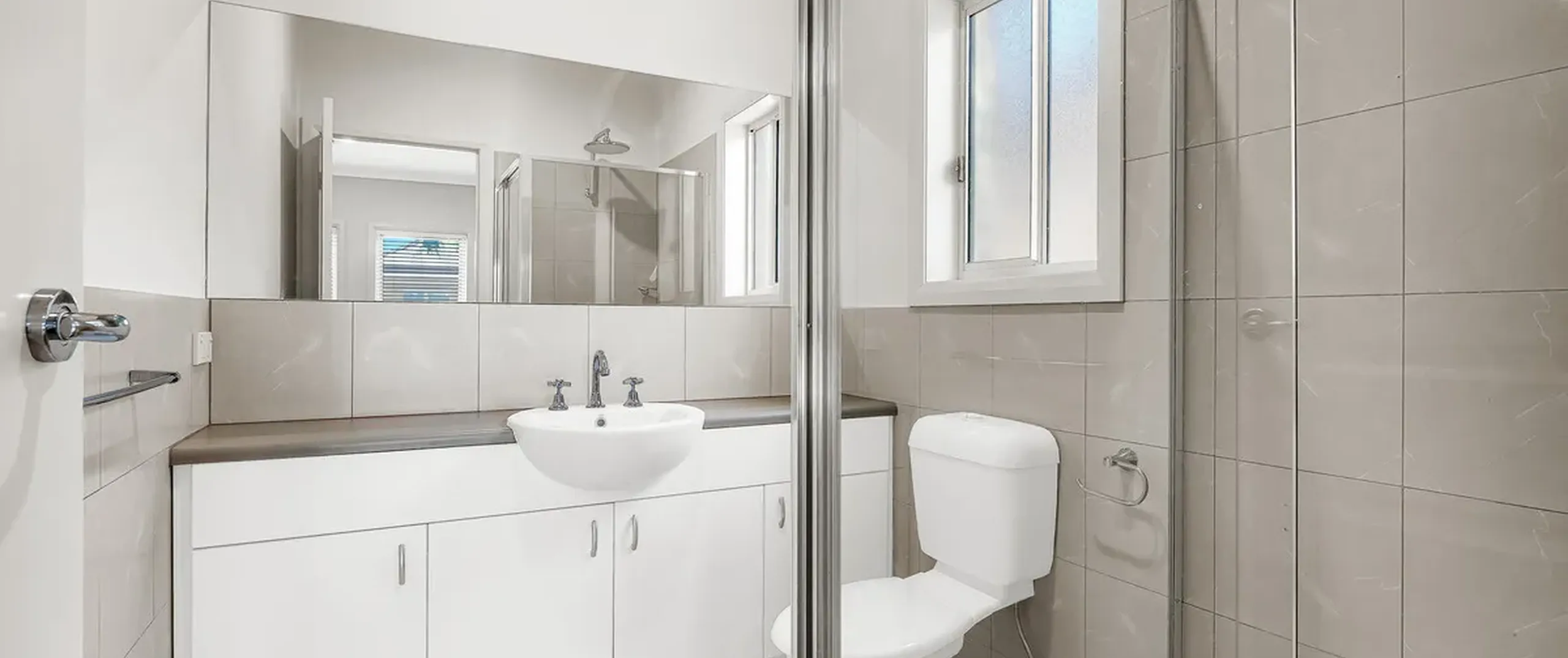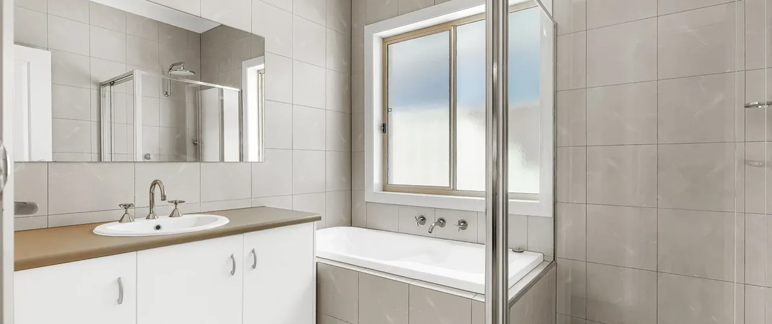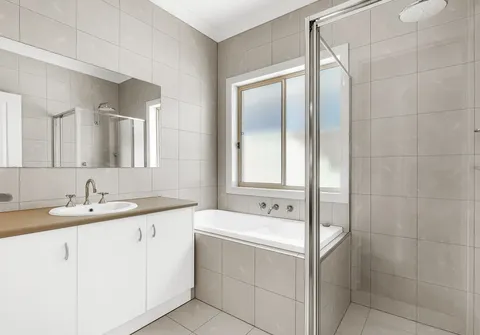 - Main bathroom with separate bath and shower