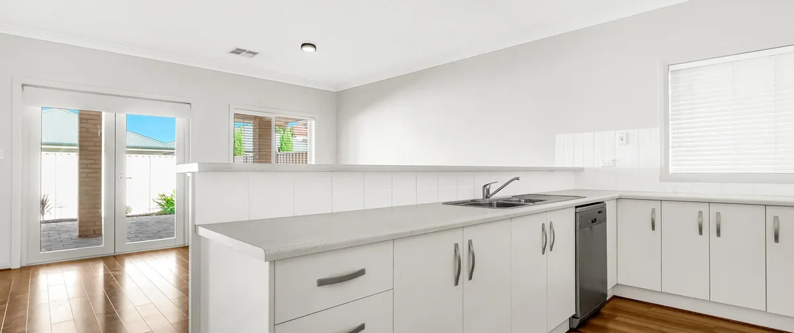 - Generous kitchen with ample cupboard space with gas cooktop and dishwasher