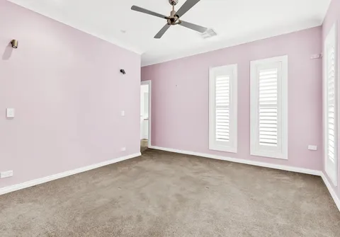 - Master bedroom with ceiling fan, walk-in robe, ensuite and floor to ceiling tiling