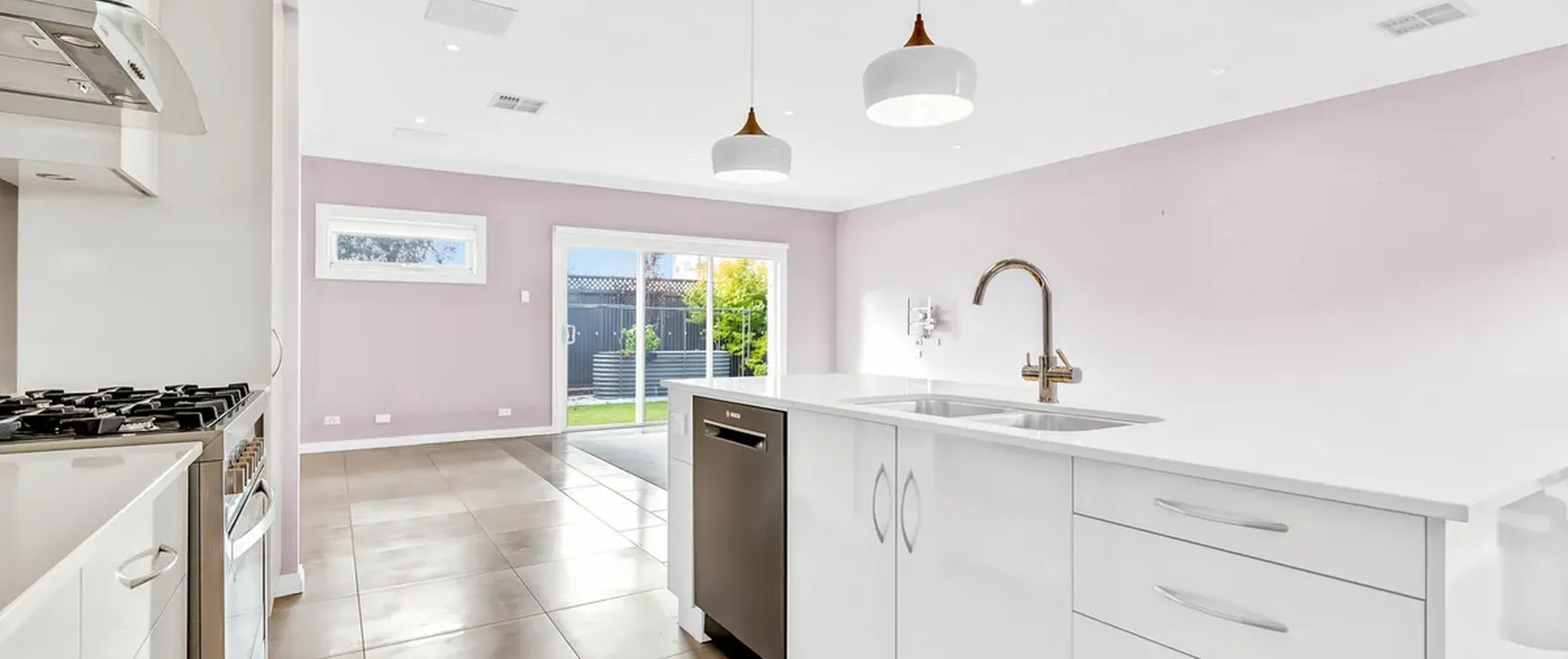 - Sleek and stylish kitchen boasting stainless steel appliances including 7-burner gas cooktop, dishwasher, island breakfast bar and ample cupboard and bench space