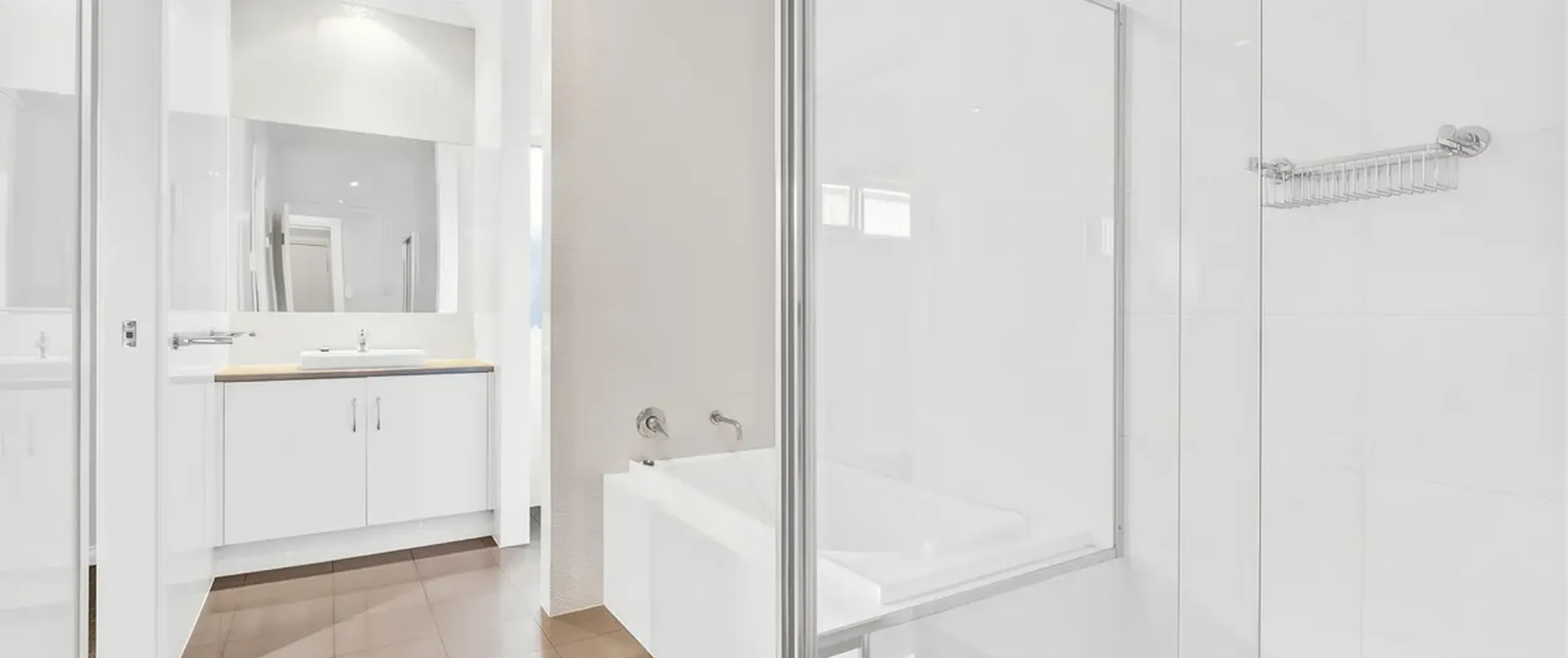 - Modern main bathroom with separate bath and shower featuring floor to ceiling tiling