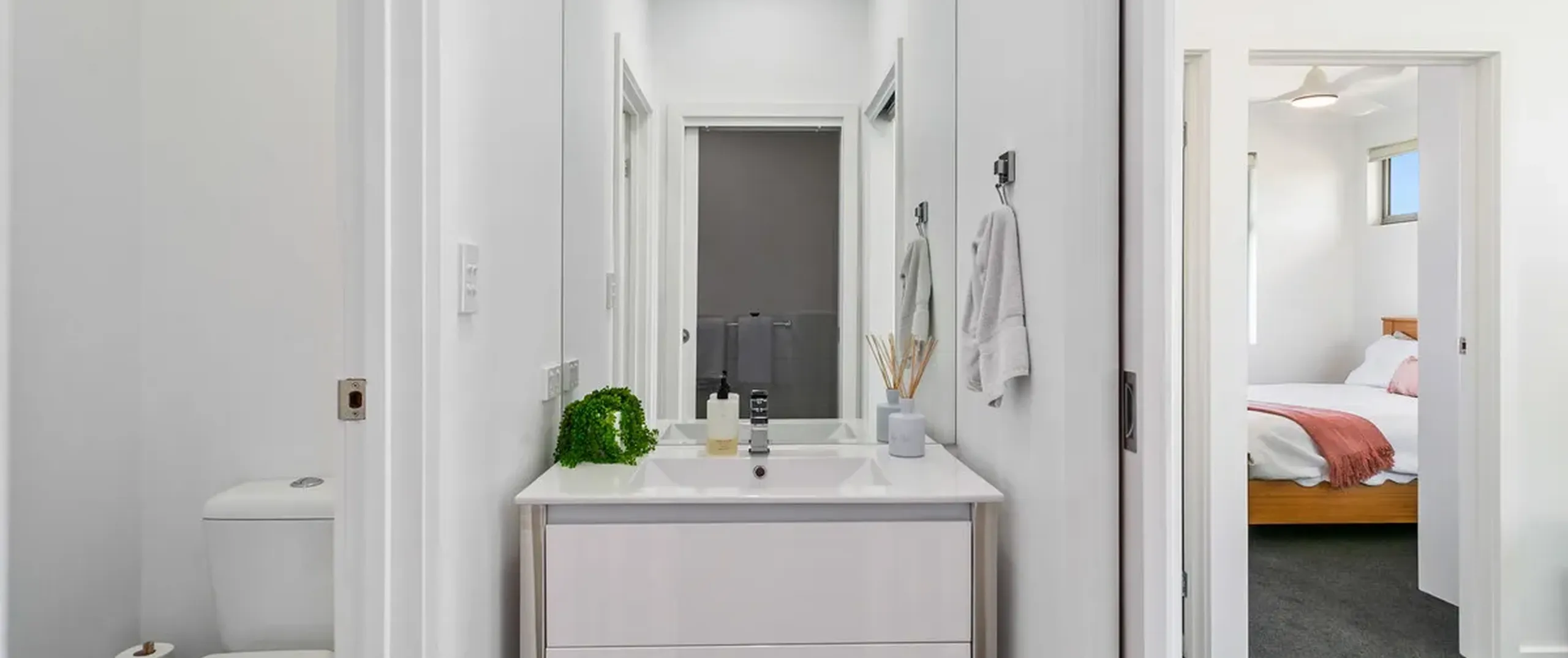 - Master bedroom with ensuite, mirror-fronted built-in robes and ceiling fan