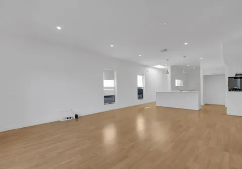 - Fantastic, open-plan dining and living area with glass sliding door opening to the backyard