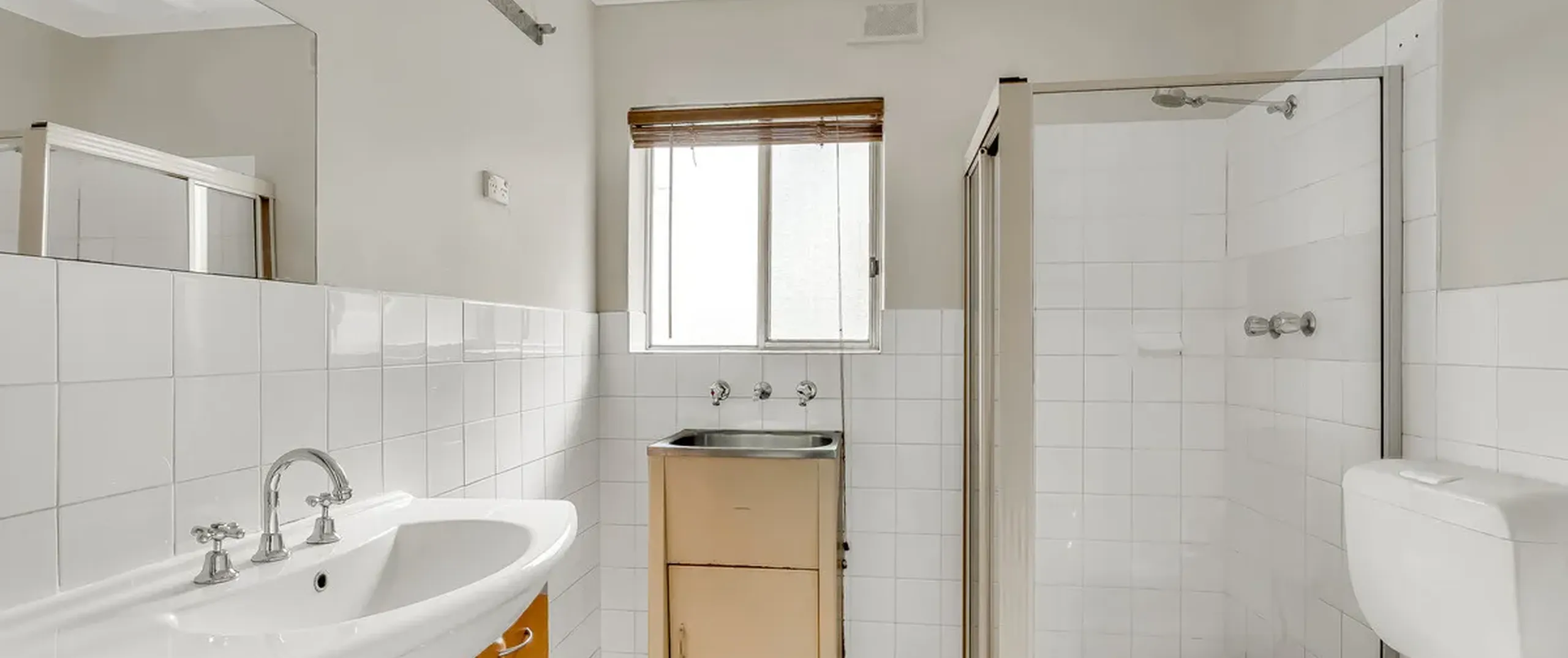 - Updated bathroom / laundry with Swedish vanity unit, bath tub and fittings on wall to hang dryer on wall