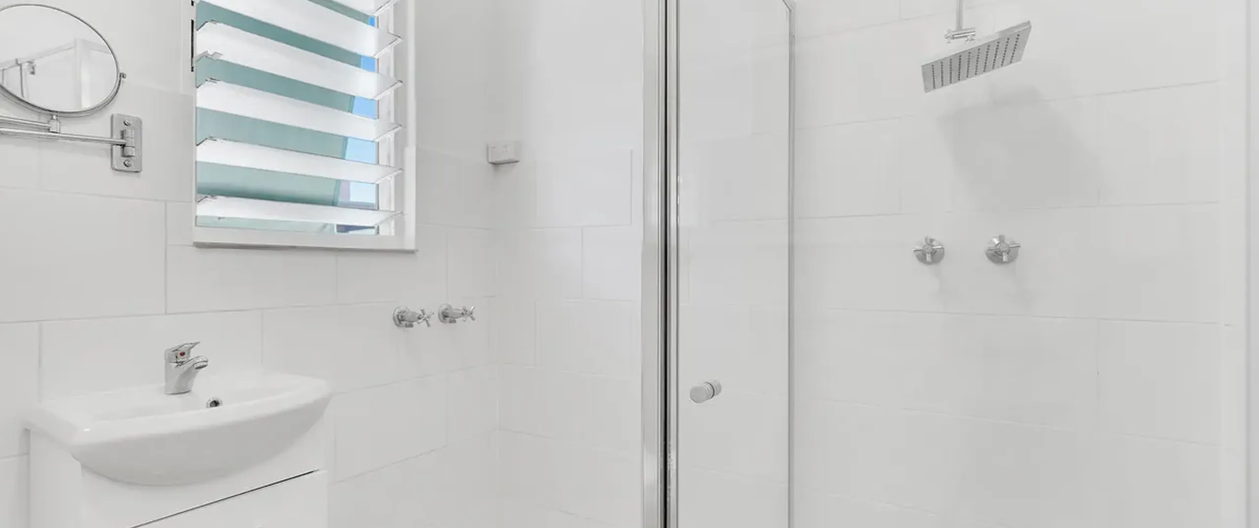 - Main bathroom with large shower, toilet and vanity and washing machine provision.