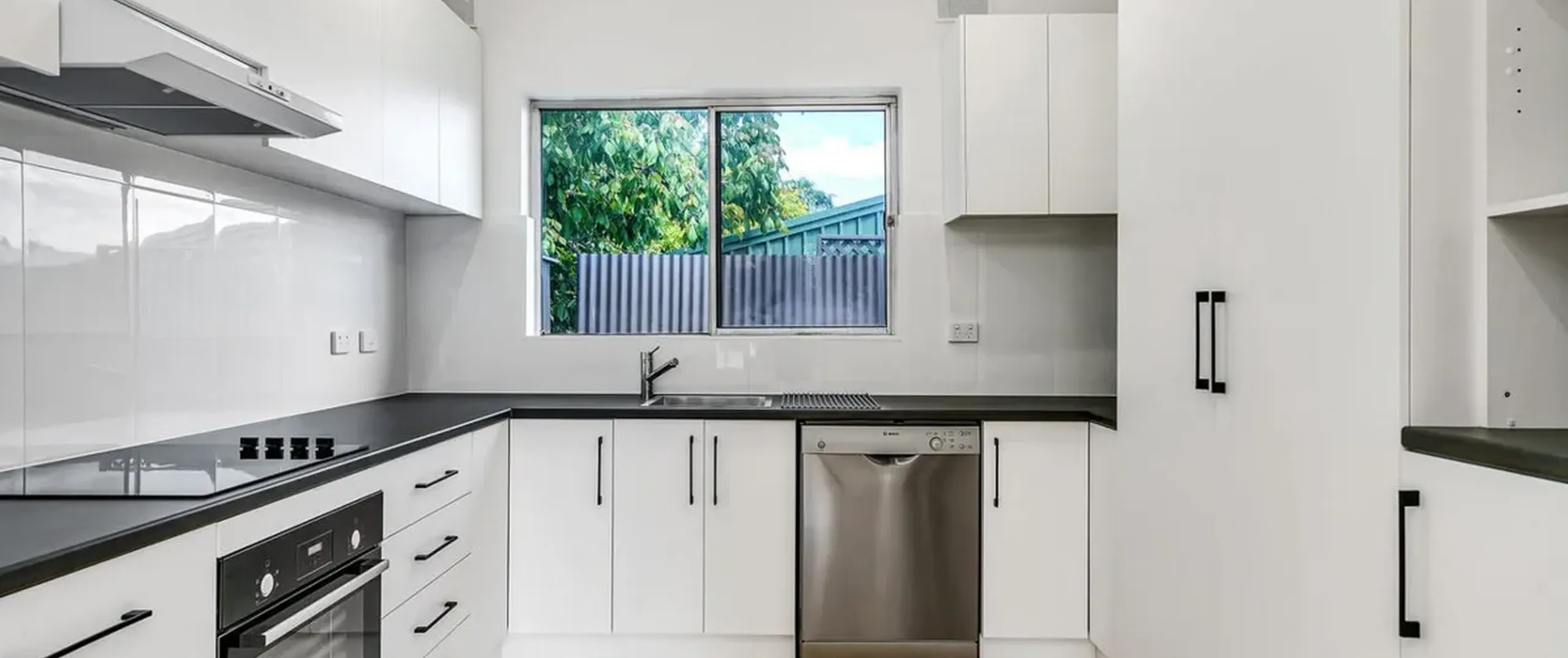 - Modern bright kitchen with oven, rangehood, dishwasher and ample cupboard and bench space