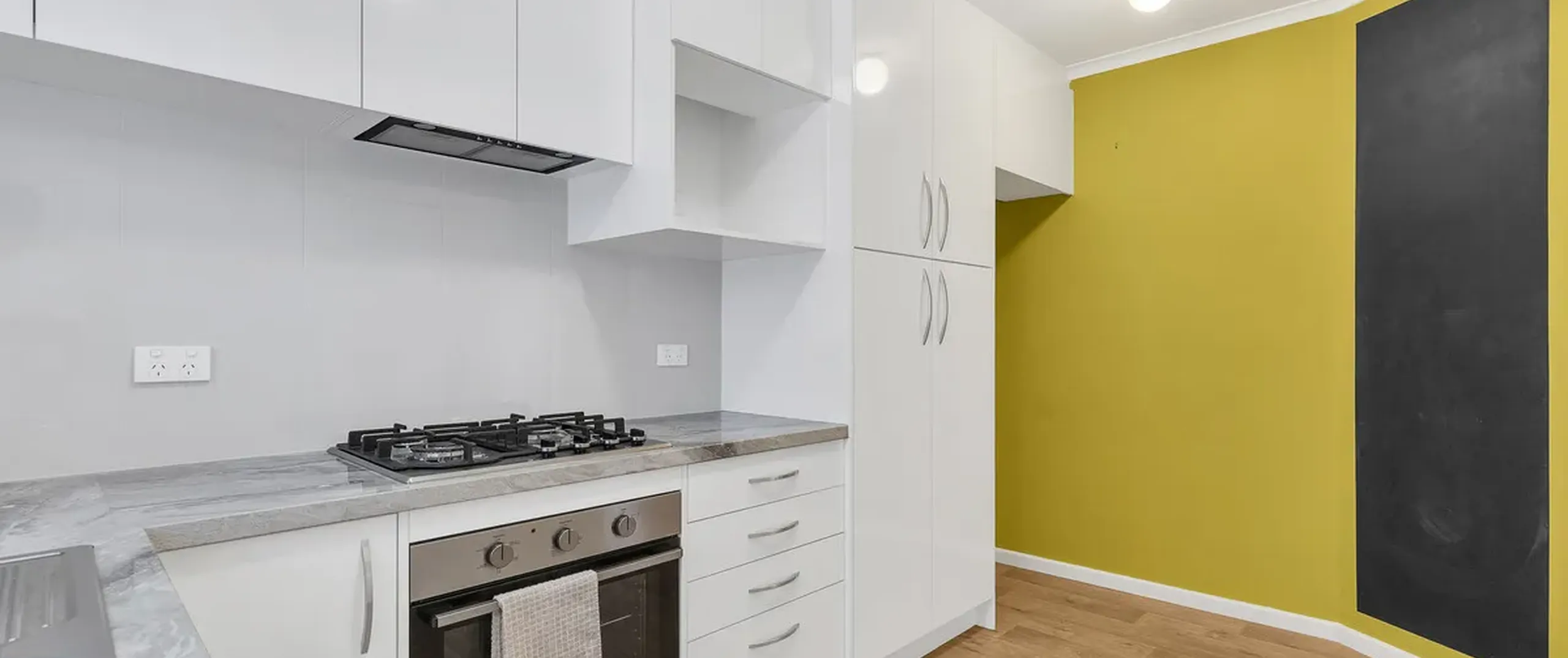 - Updated kitchen with gas cooktop, stainless steel appliances, ample cupboard and bench space