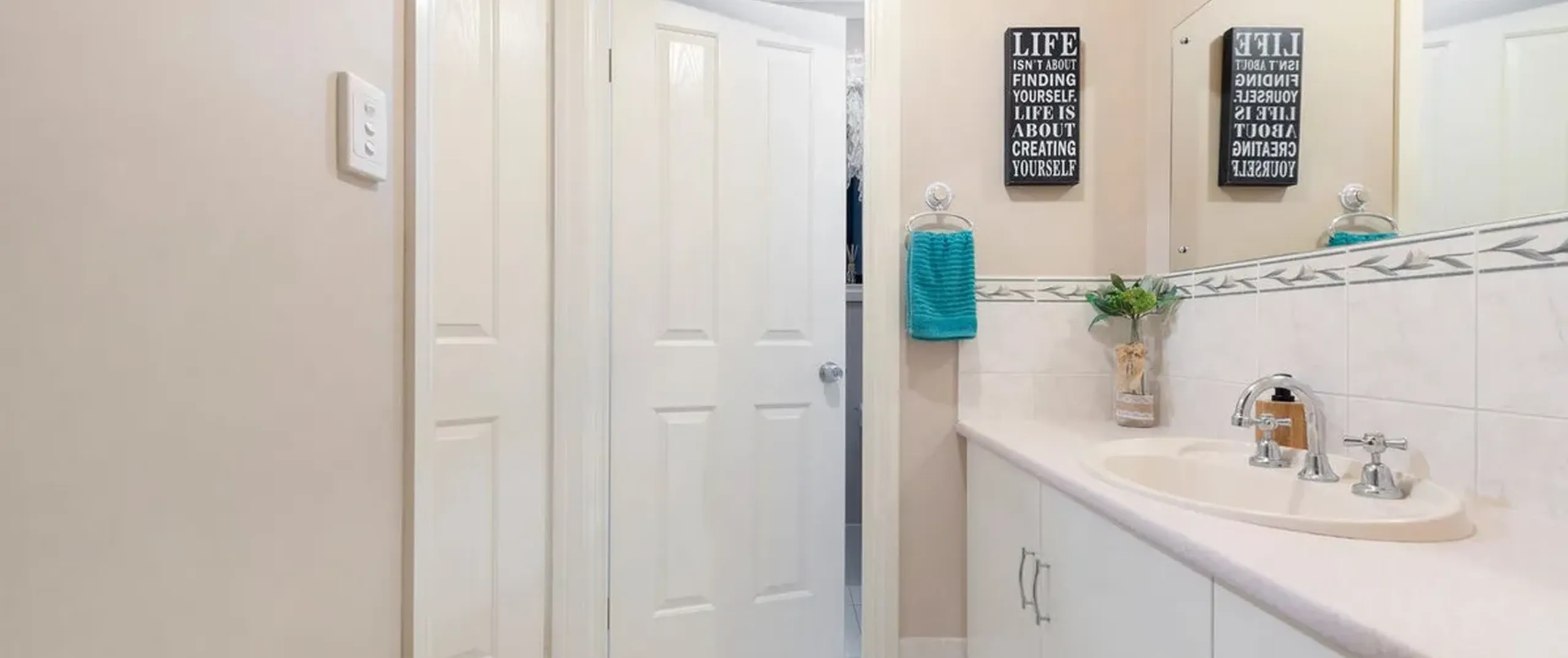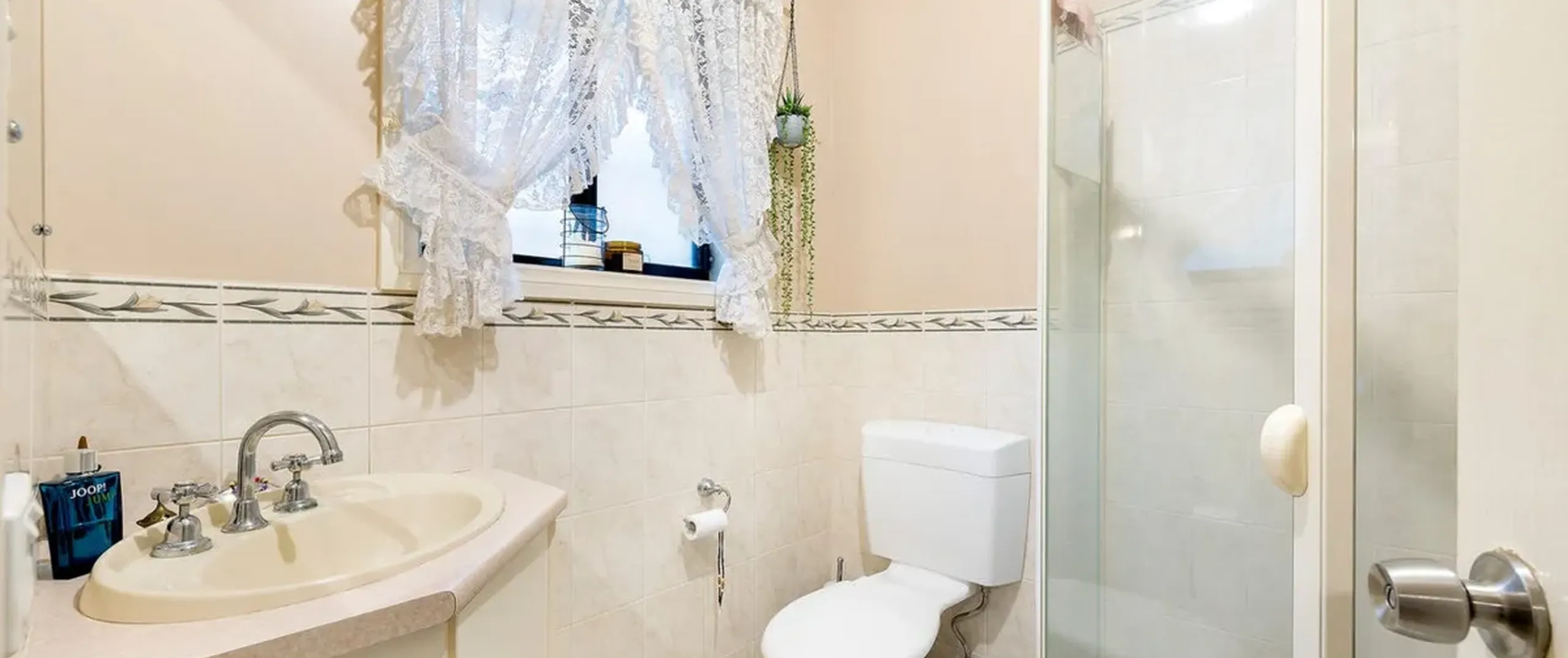 - Bright three-way main bathroom with separate bath, shower, toilet and vanity
