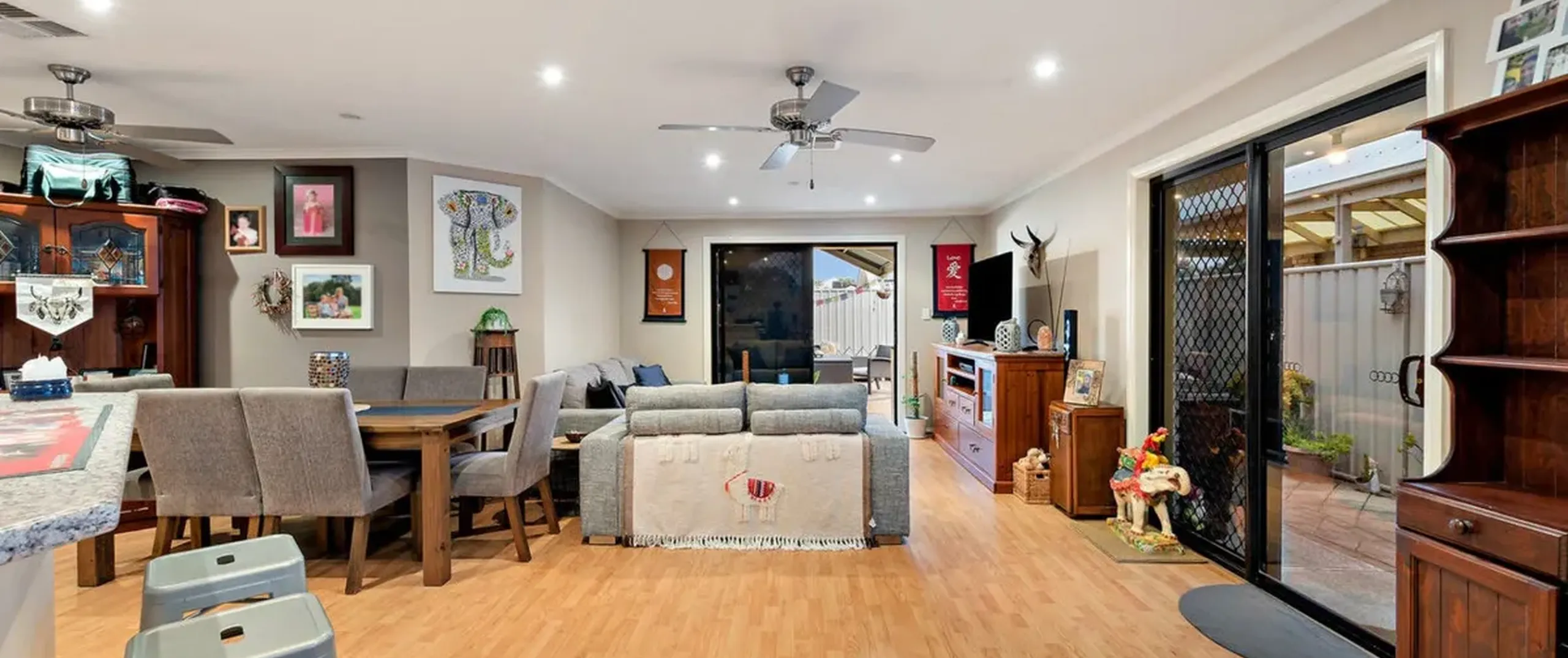 - Zoned ducted heating and cooling and ceiling fans throughout