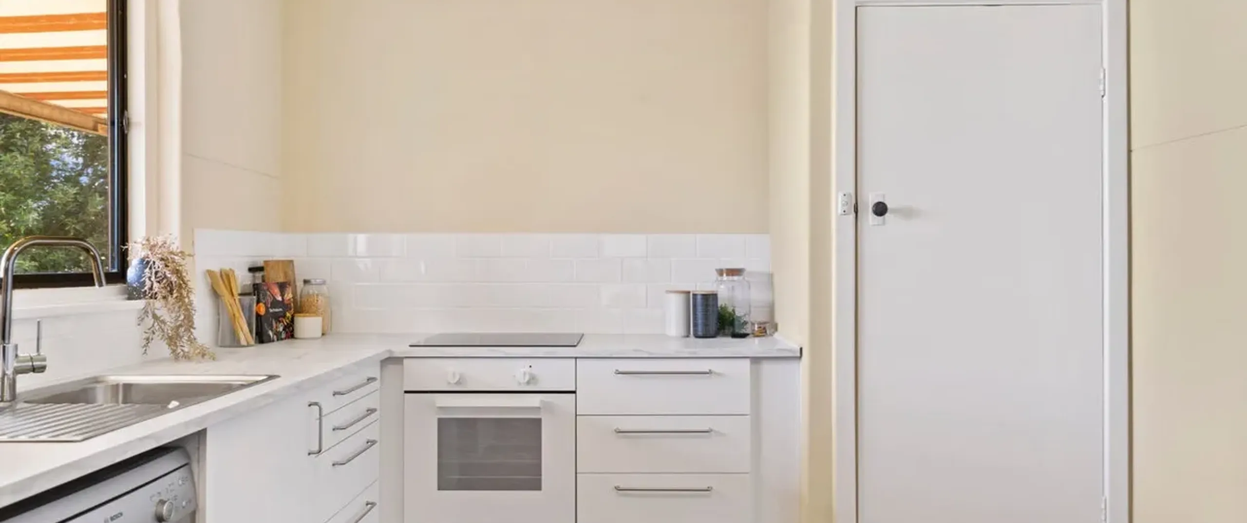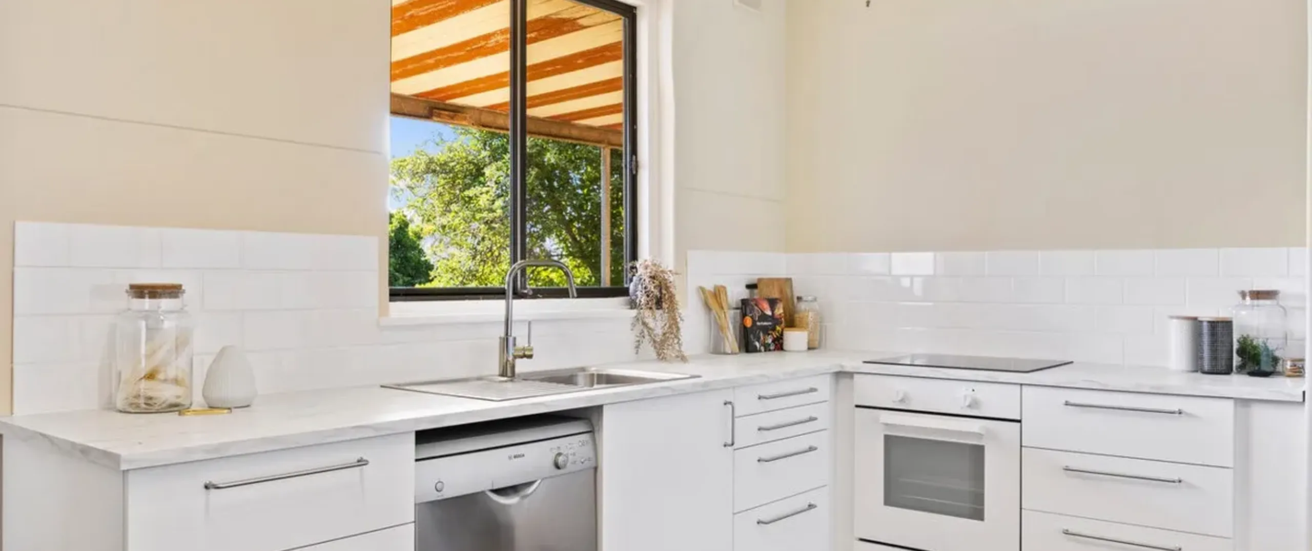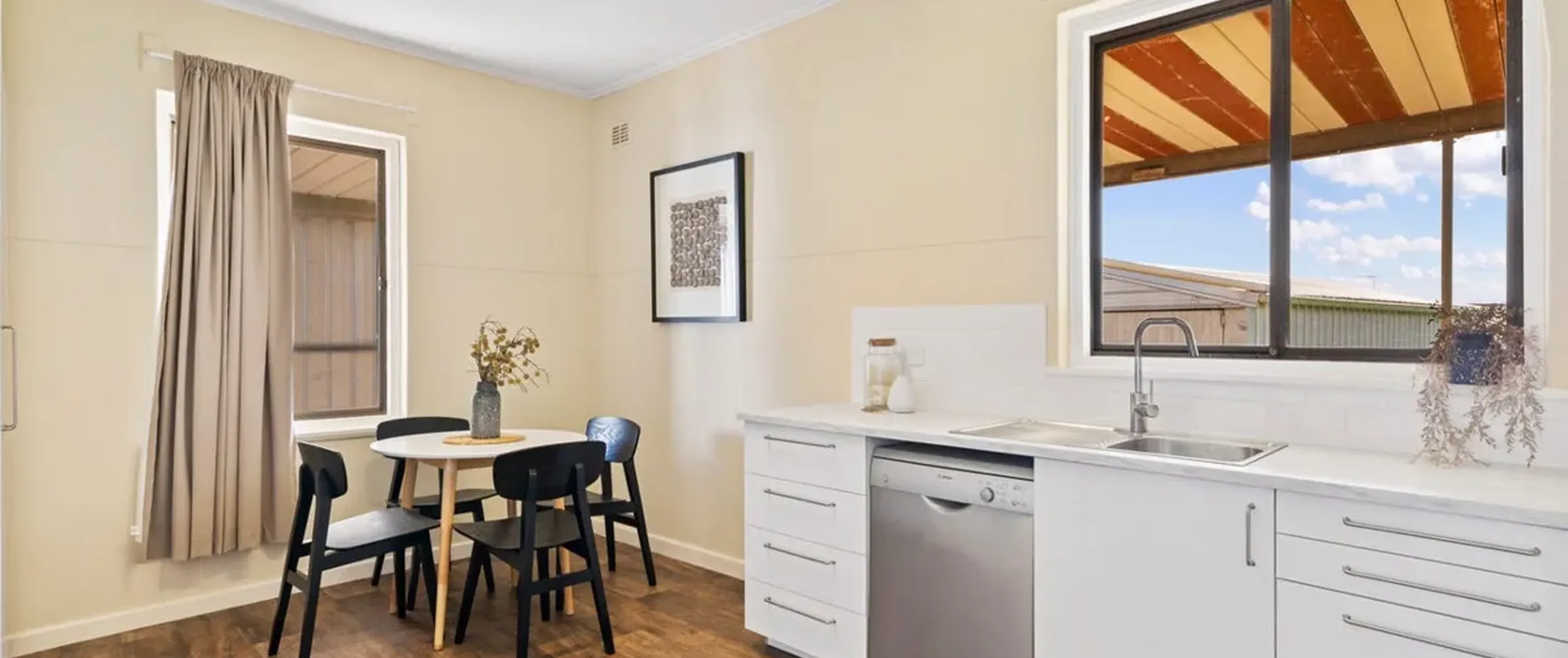- Open plan kitchen/dining with dishwasher, ample cupboard and bench space