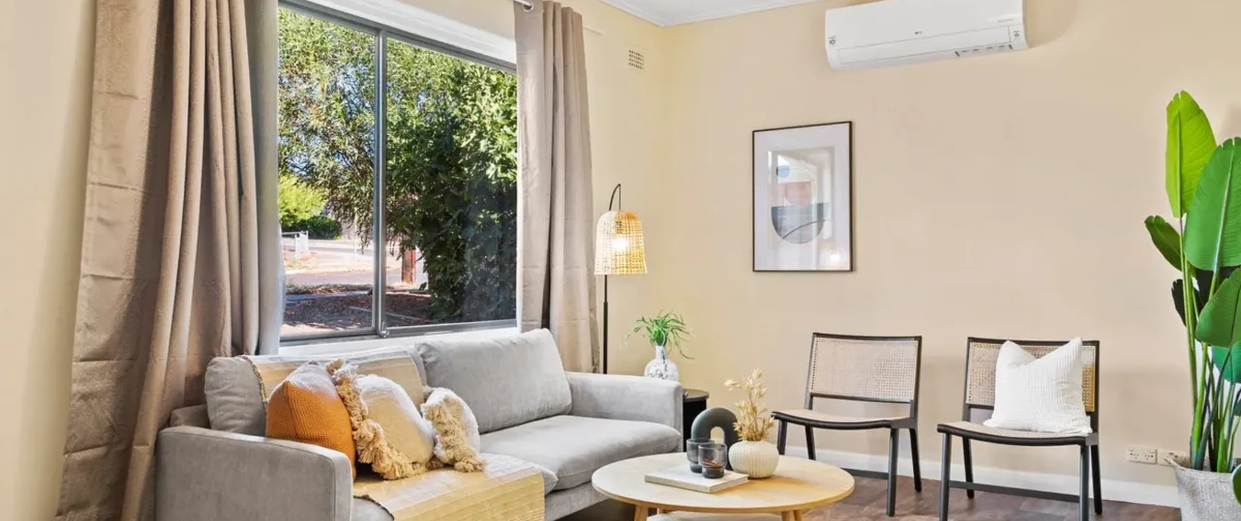 - Light filled lounge room with split system air conditioner