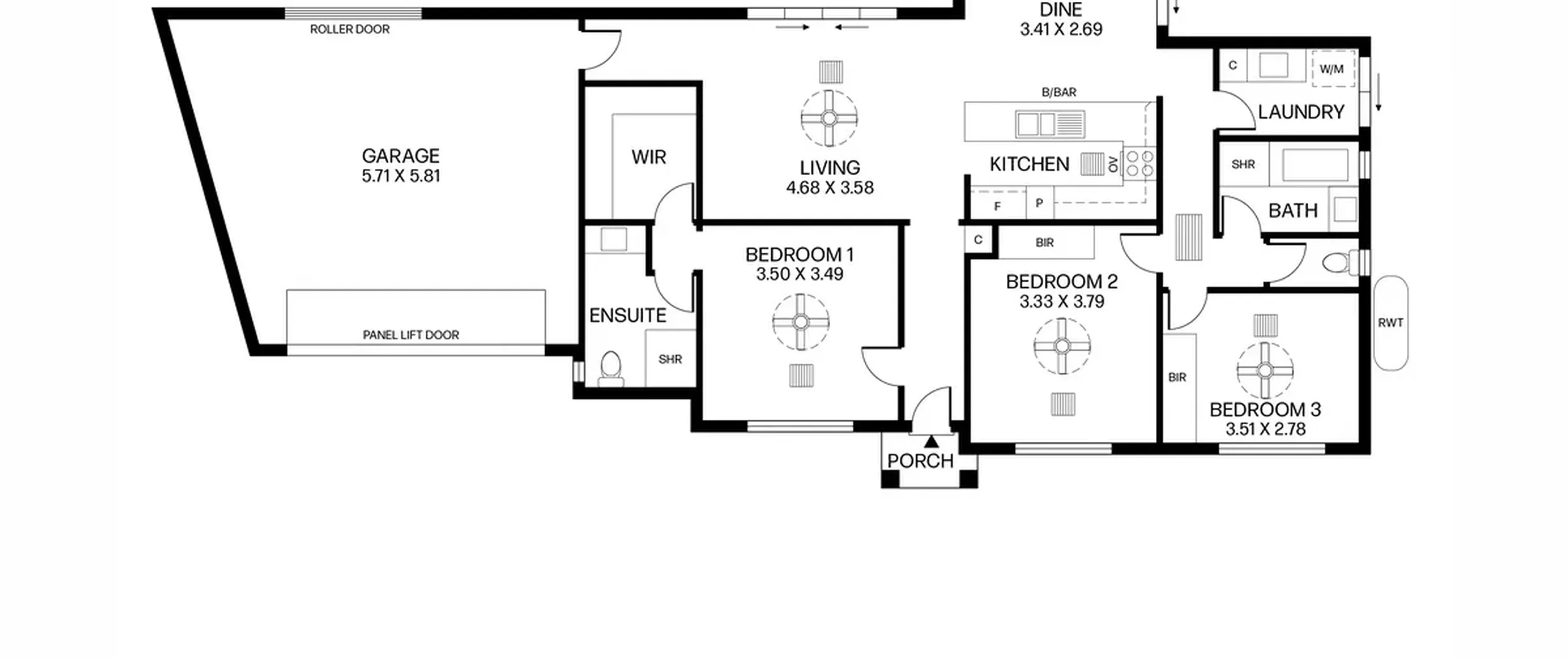 - Large garage with panel lift door and roller door providing direct access to the rear of the property