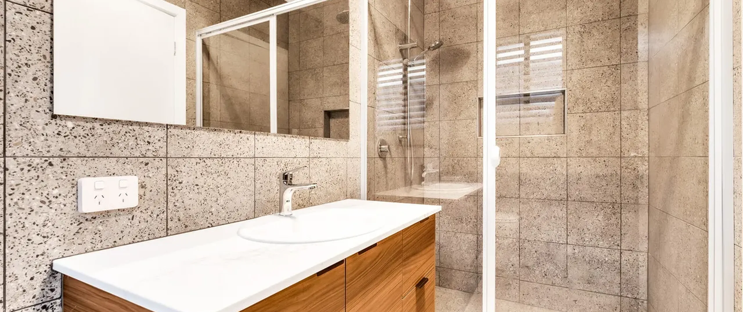 - Ensuite with floor to ceiling tiles, rainfall shower and large vanity with extra storage underneath