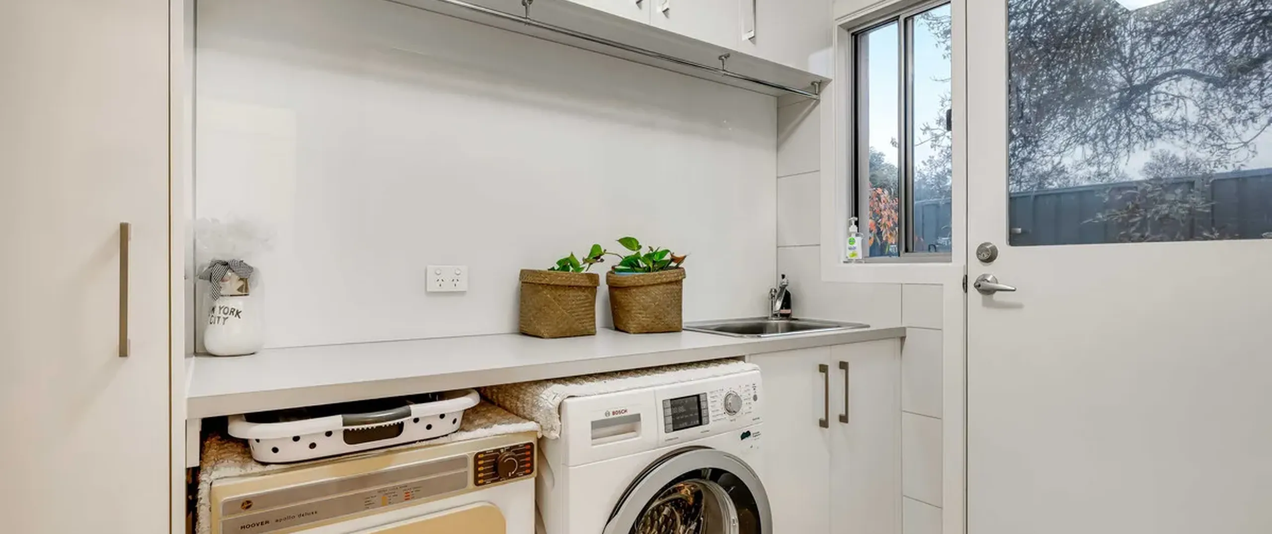 -Laundry with storage areas and room for under bench appliances