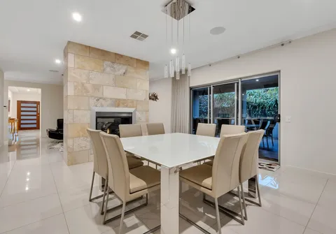 -Dining area complete with dining setting and opening to covered alfresco area