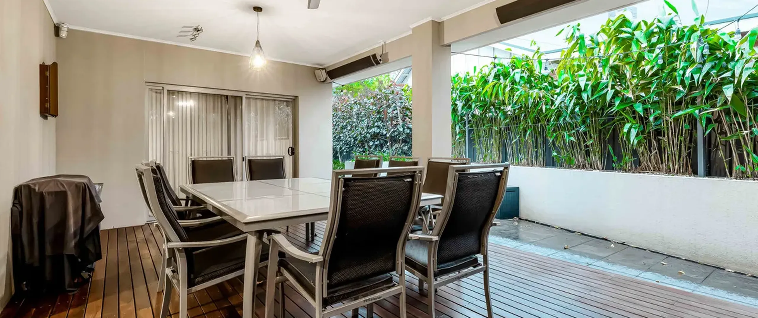 -Decked and heated alfresco area is complete with outdoor setting