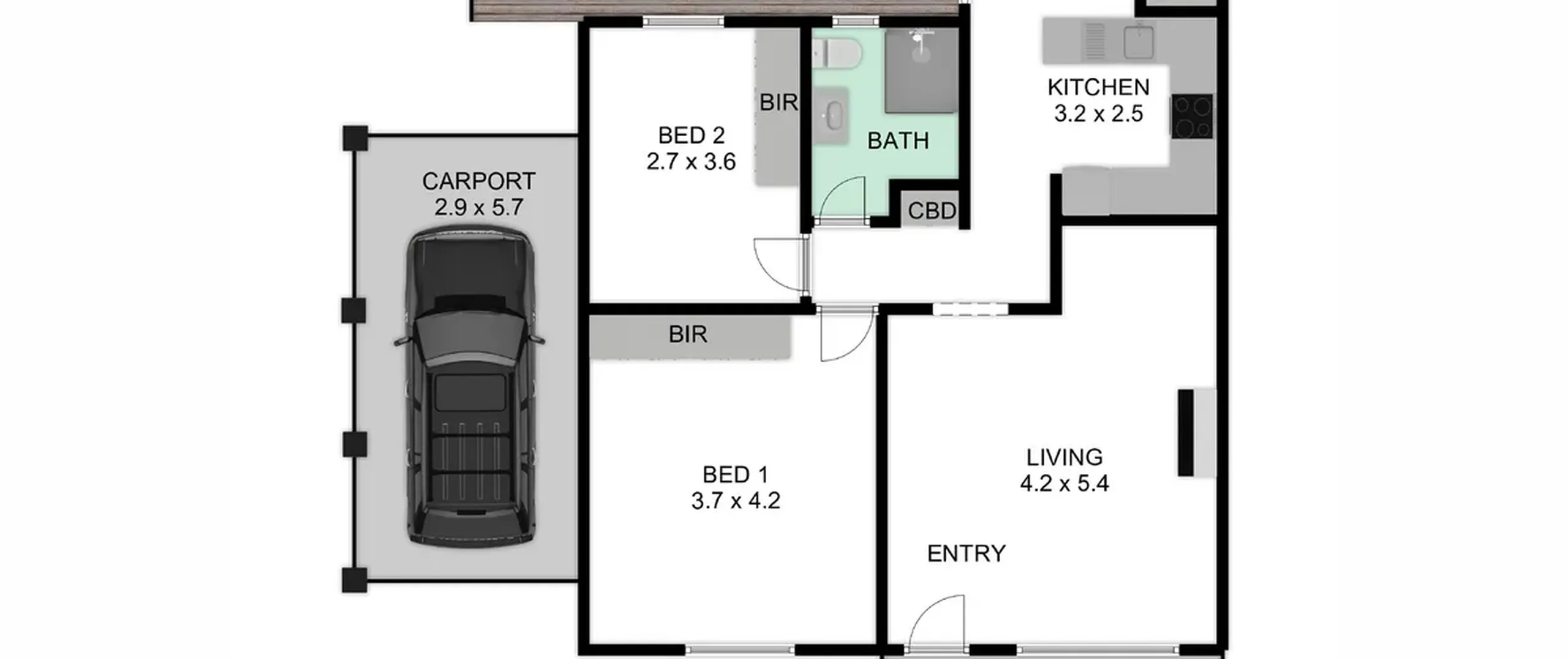 - 2 Good sized bedrooms, main bedroom with built in robe