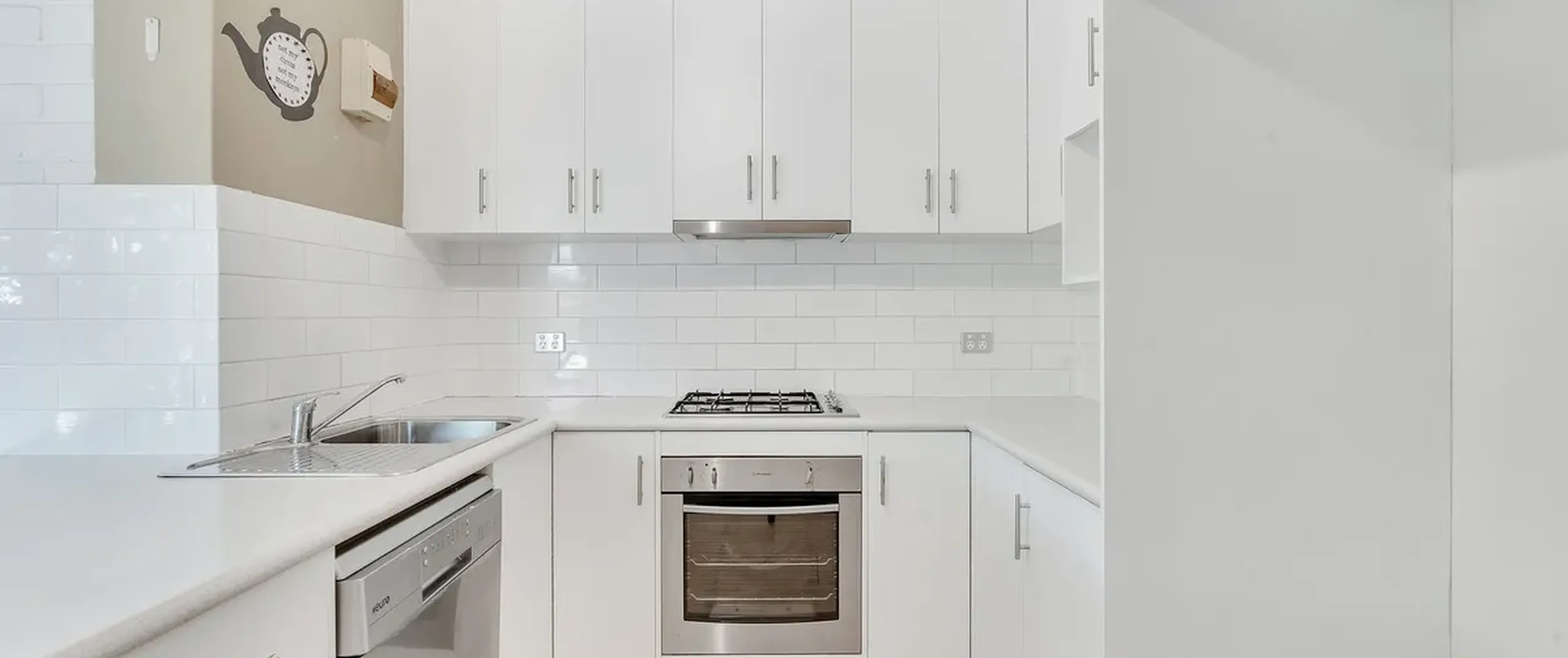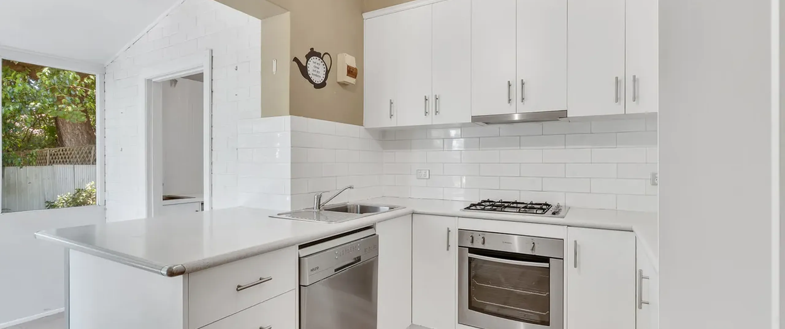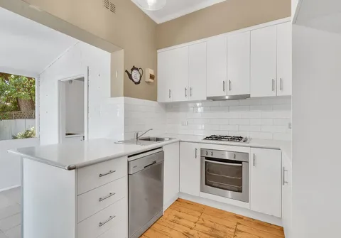 - Contemporary updated kitchen with gas cooking, dishwasher, electric oven, and ample cupboard and bench space