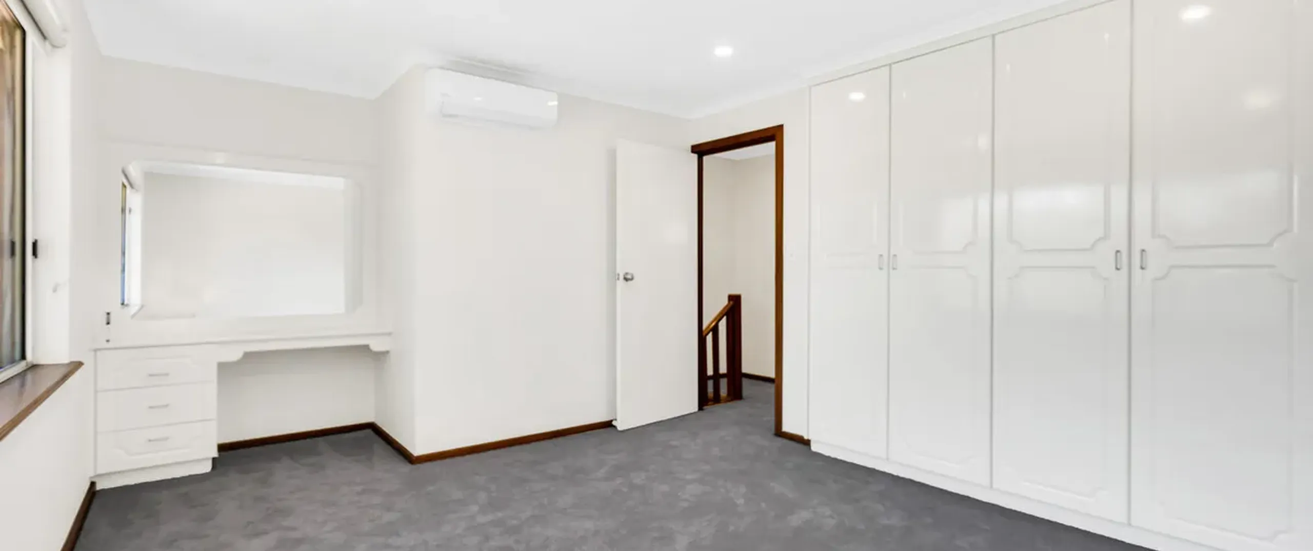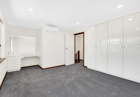 - Main bedroom equipped with built-in robe, dresser, split system and new carpets