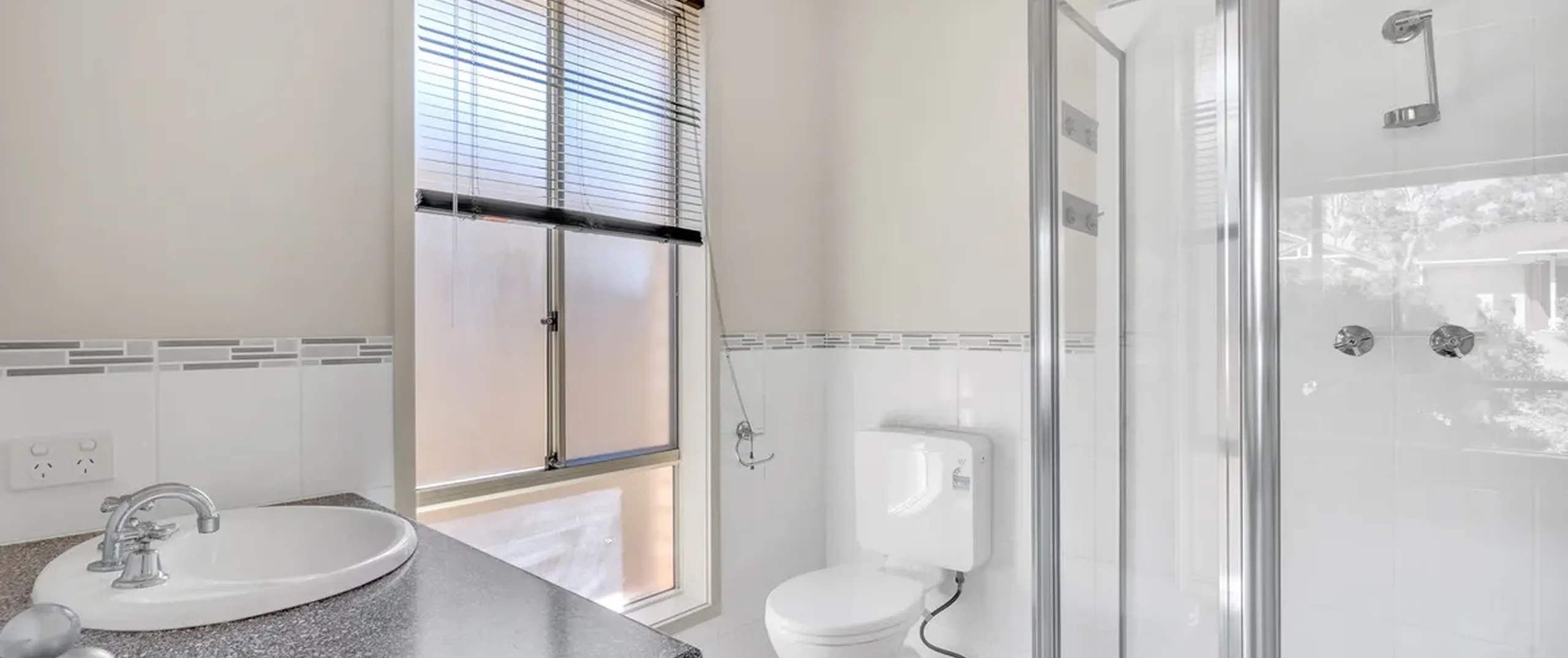 - Ensuite bathroom with large corner shower, vanity with storage space under and toilet