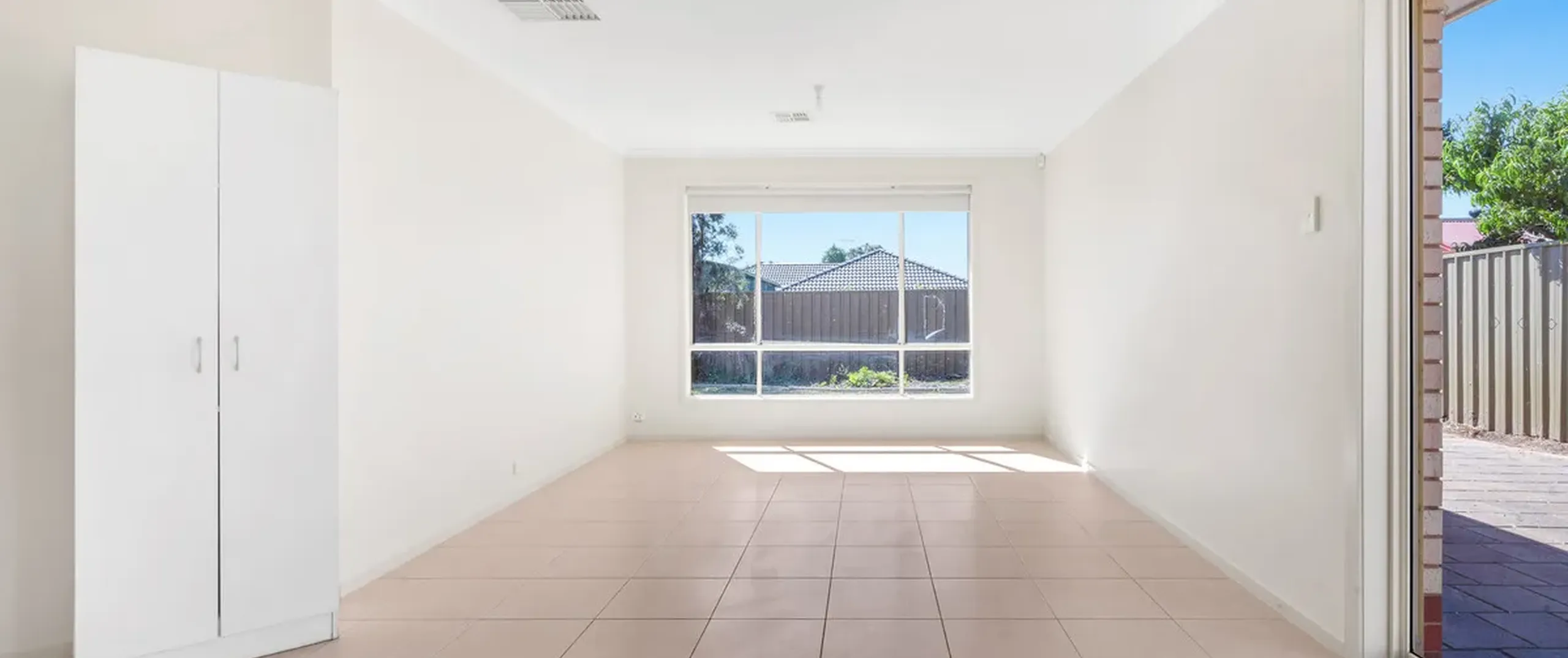 - Tiled floors in the living room with sliding door to the backyard