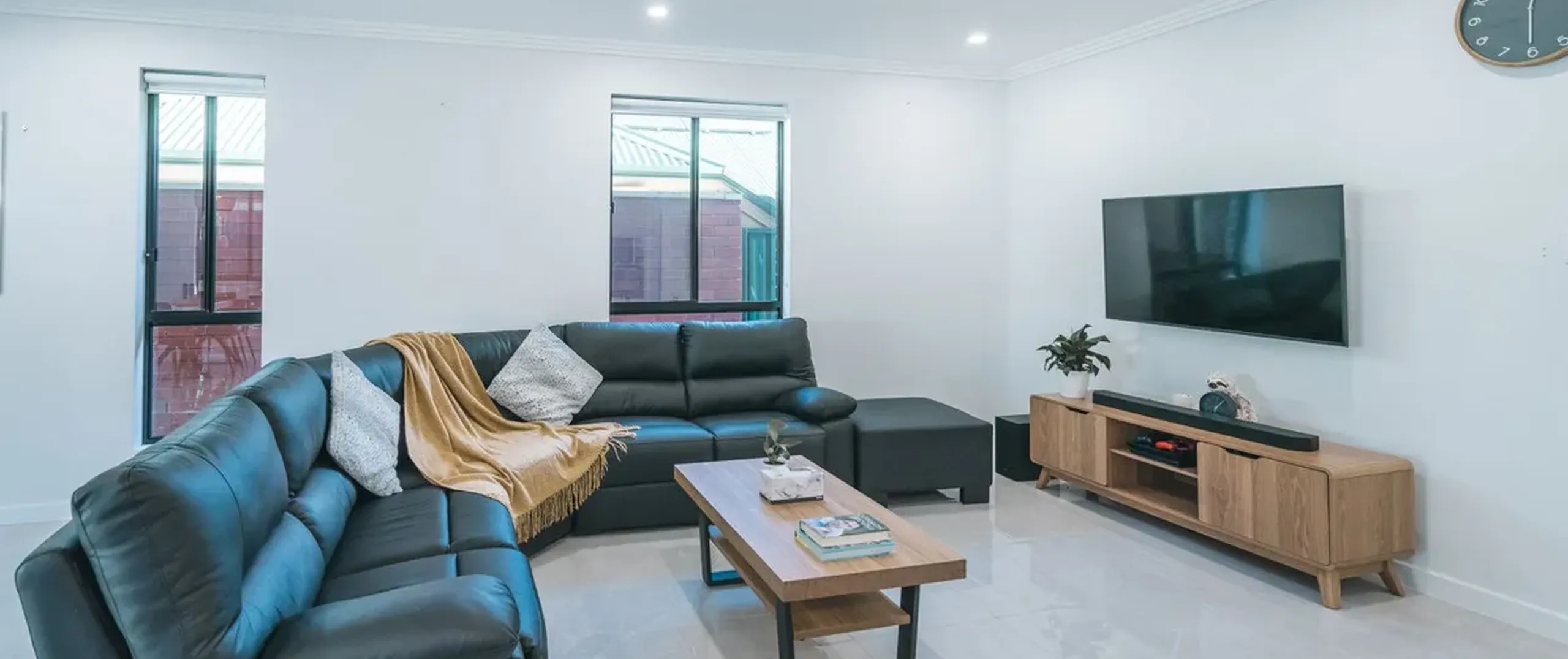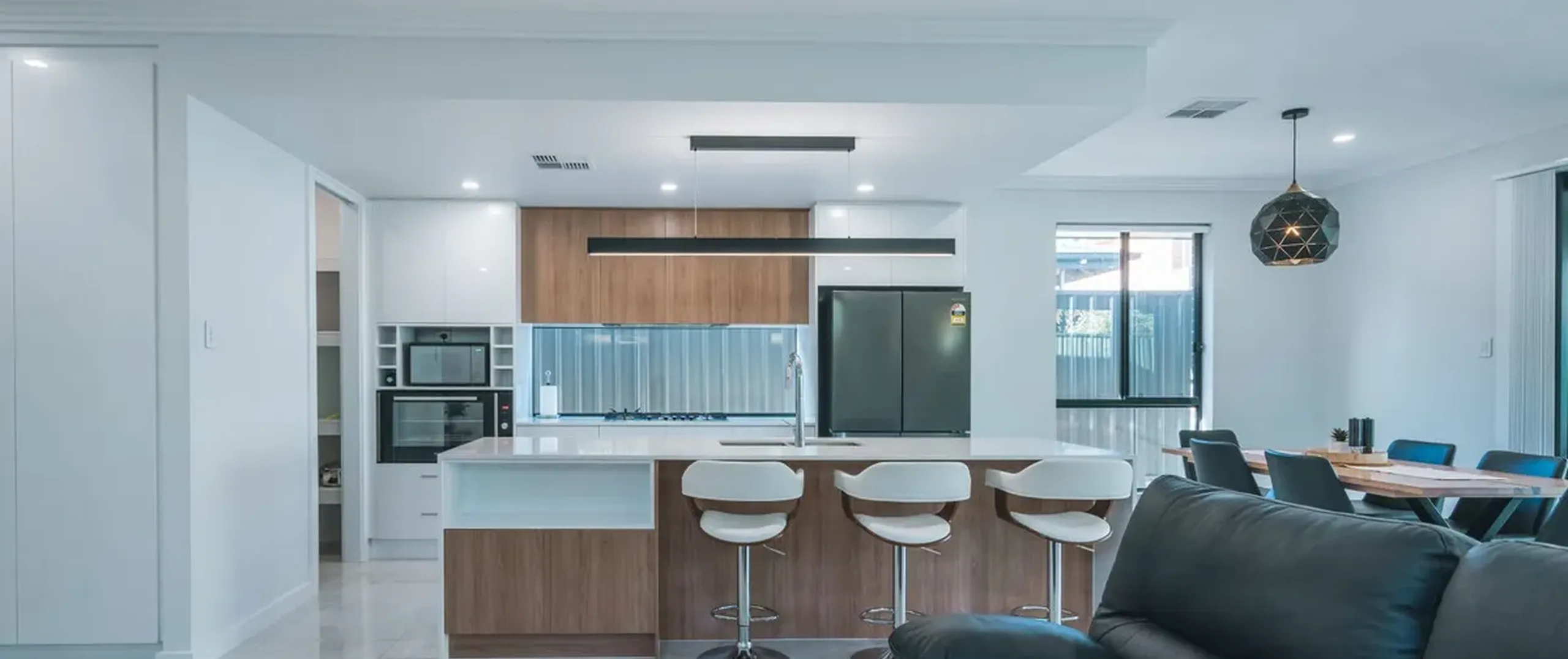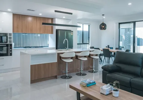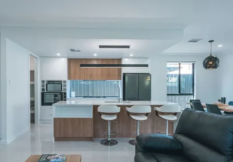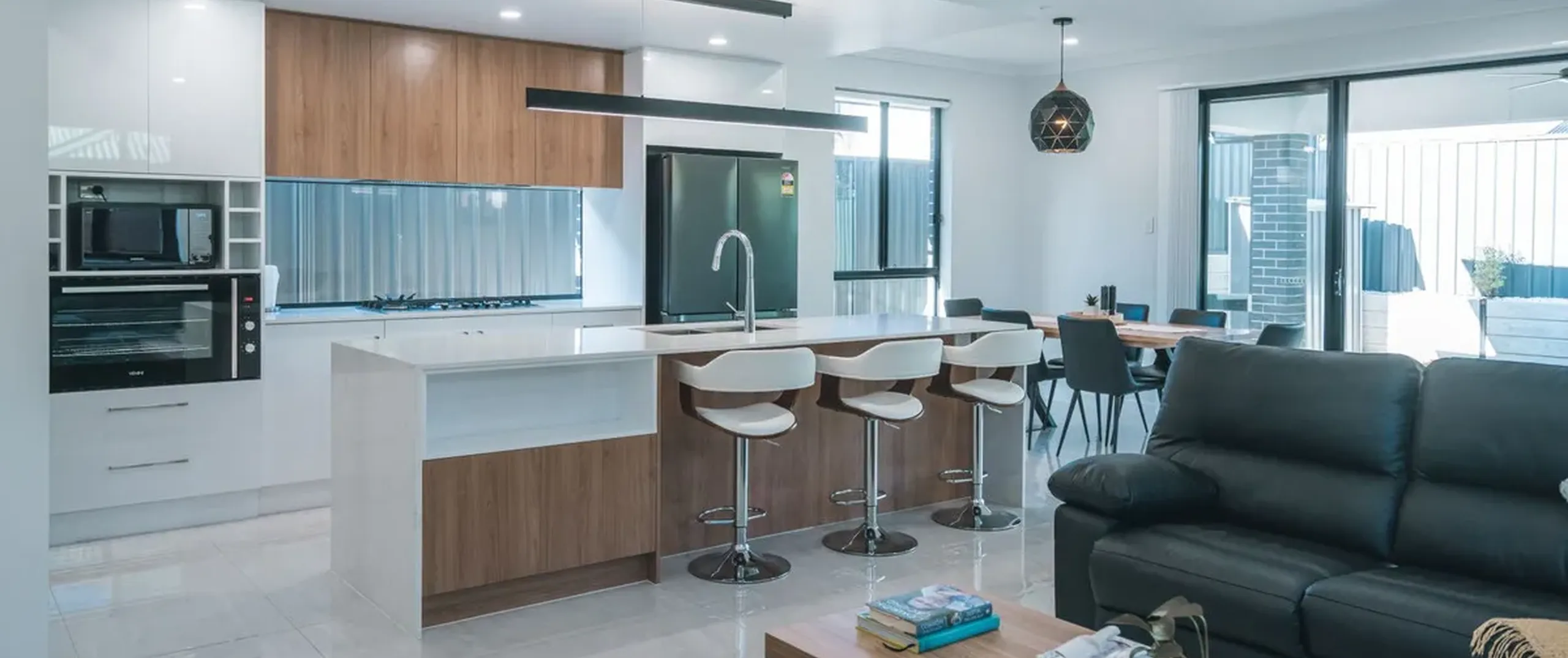 - Open plan living, dining and kitchen