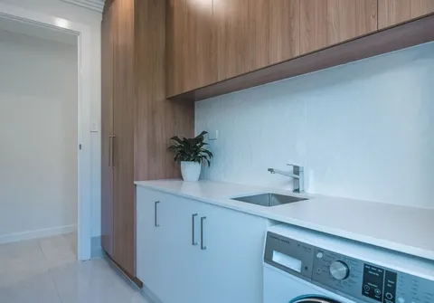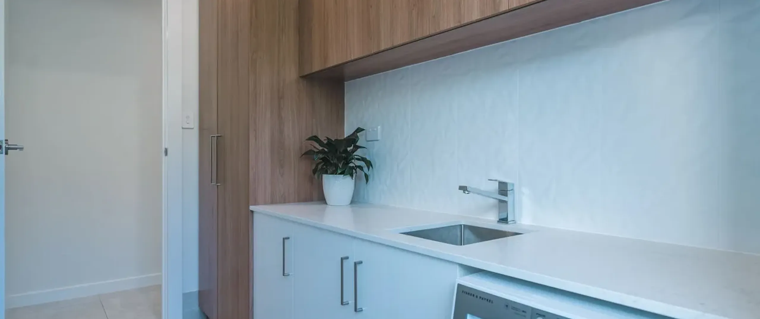 - Practical laundry with ample storage and external access